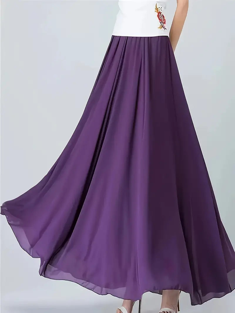 Plus Size Women'sA-Line Pleated Skirt High Waist Polyester Office Wear