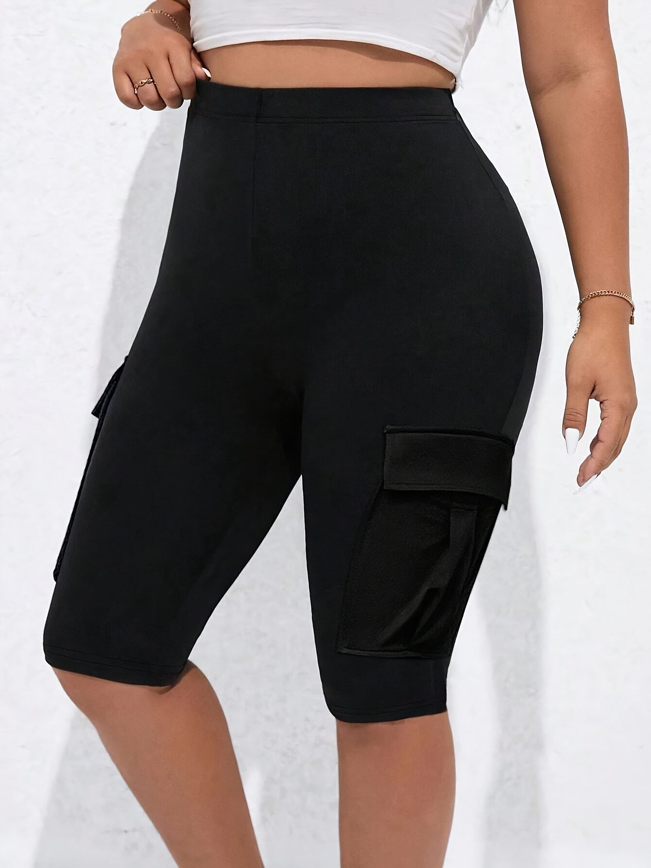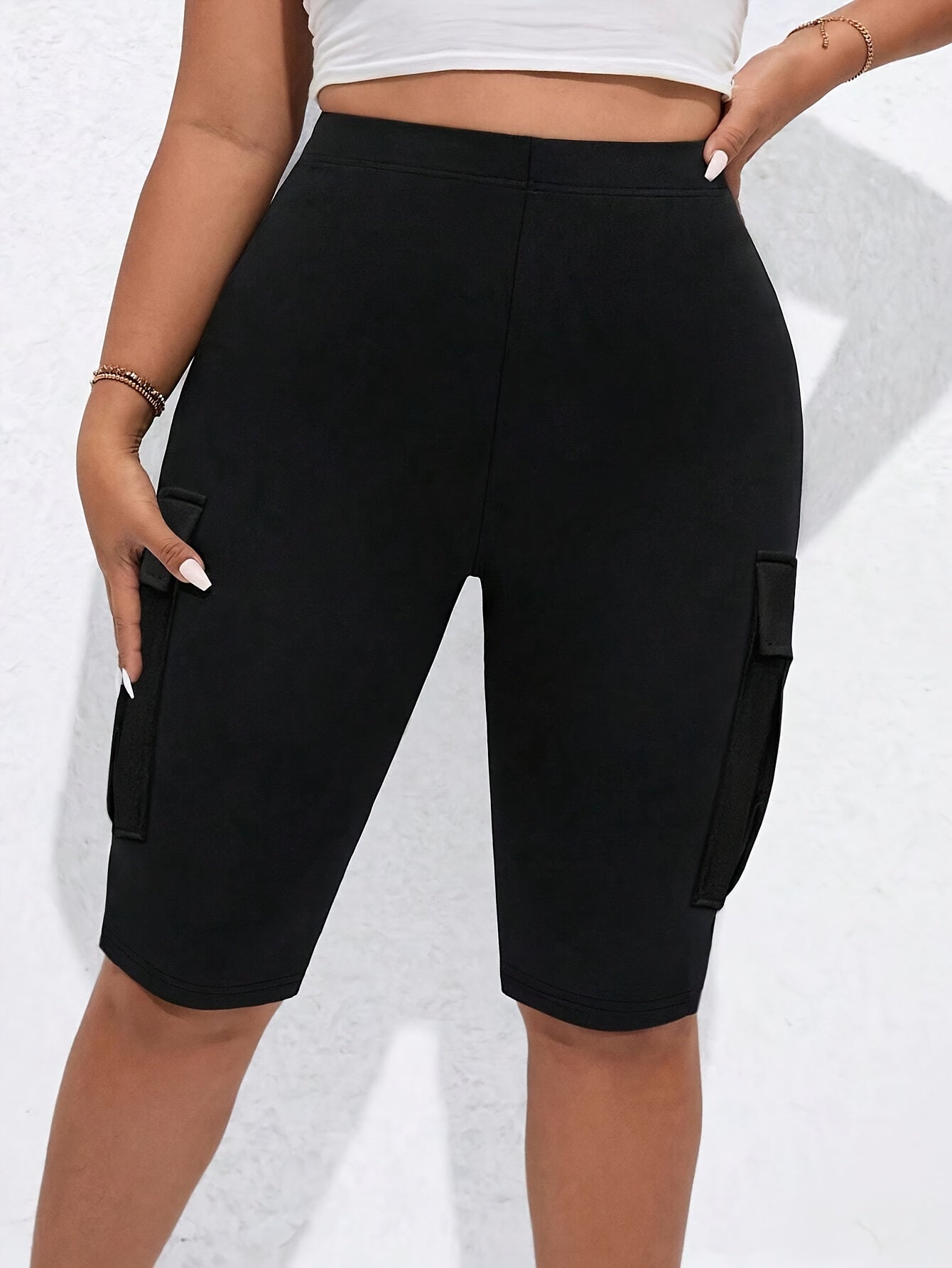 Plus o'lcham ayollar uchun to'liq rangli yuqori belli yengil qopqog'i bo'lgan shortlar bahor yoz