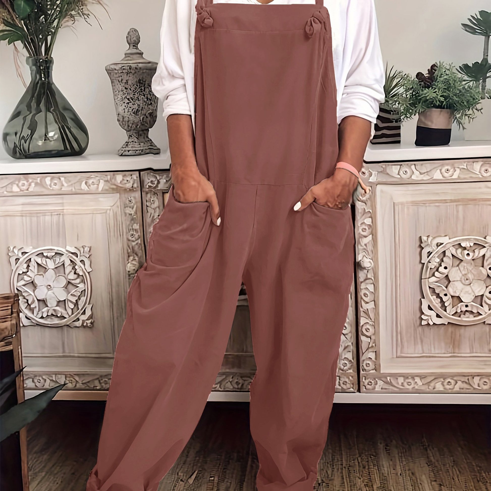 Plus Size Women Solid Knot Overall Jumpsuit Casual Summer Spring