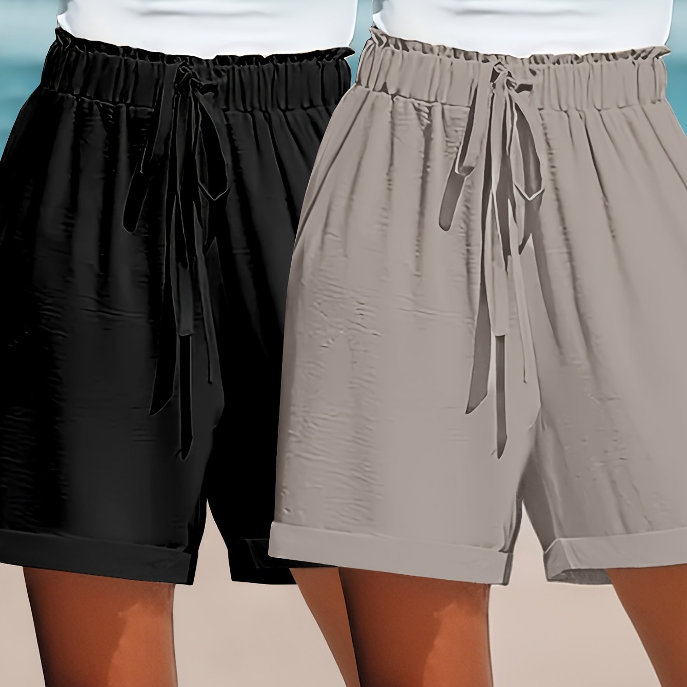 Plus o'lcham ayollar uchun kundalik to'liq rangli yuqori belli bo'sh keng yengli keng bo'yinli shortlar 2 dona set