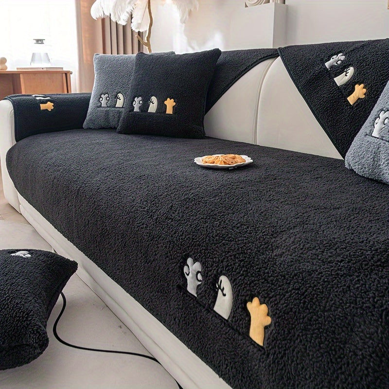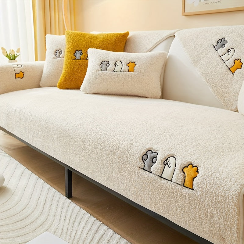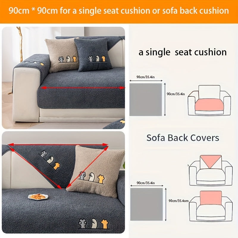 Hayvonli tikuv bilan plush shearling divan qoplamasi - Barcha divan o'lchamlari uchun qulay, sirpanmaydigan himoya - Yotoqxona, yashash xonasi, ofis uchun yumshoq bezak.