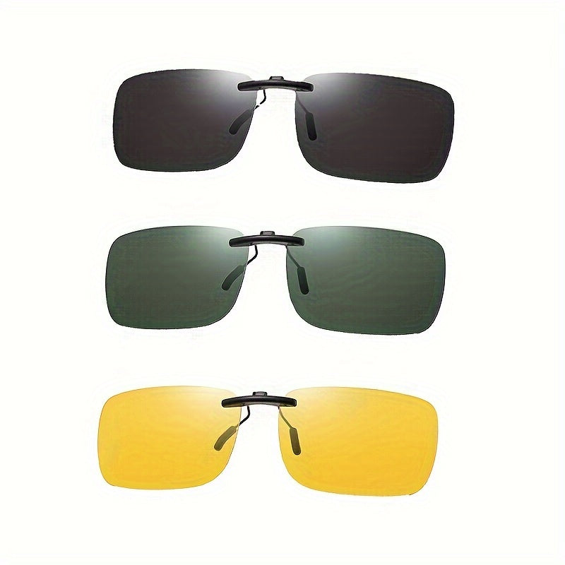 Erkaklar va ayollar uchun 3 ta polarizatsiyalangan klip-on quyosh ko‘zoynaklari, retro kvadrat sport uslubi