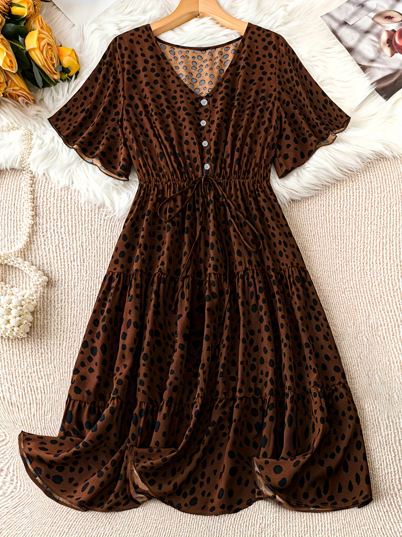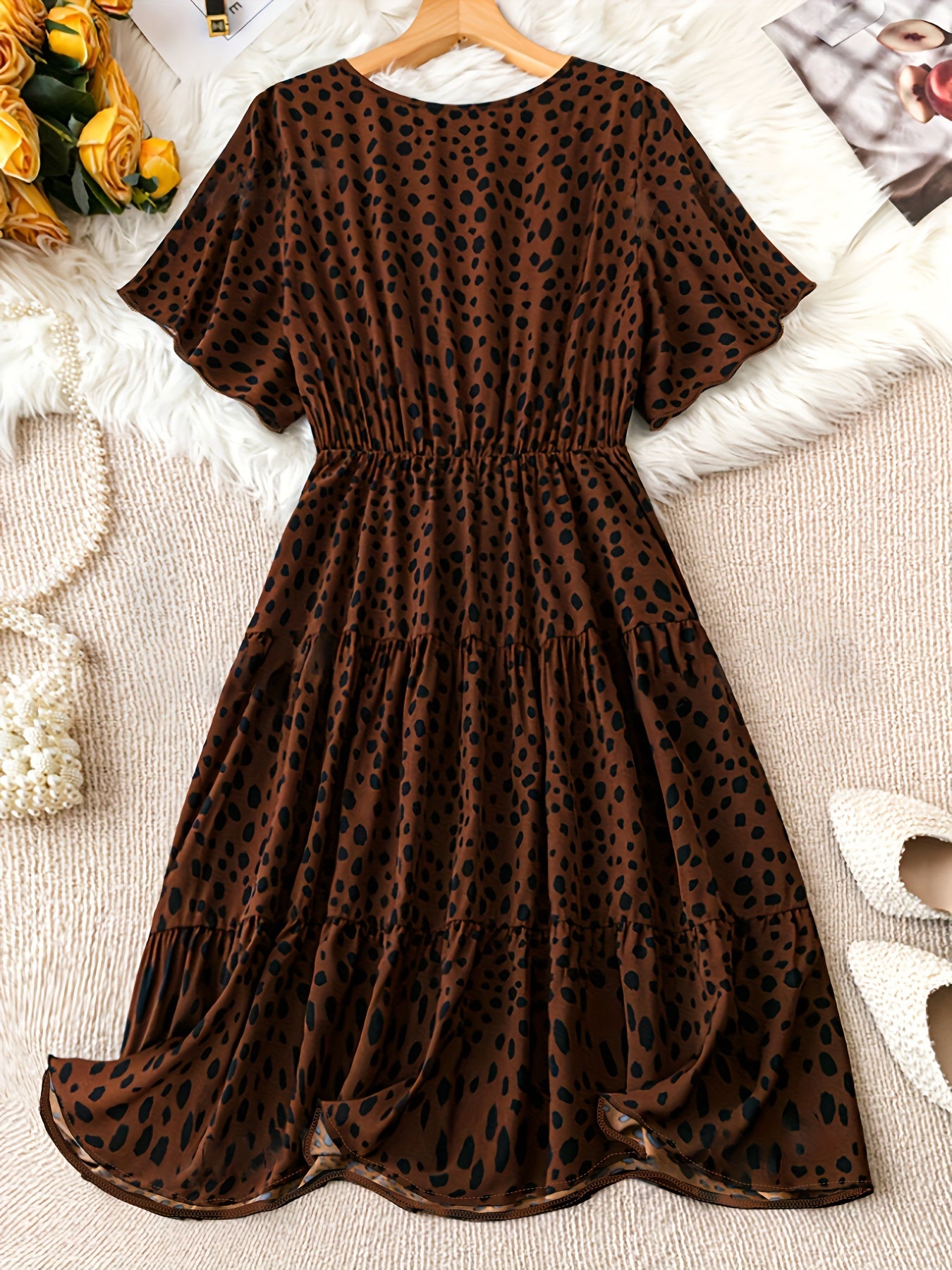 Katta o'lchamdagi ayollar uchun polka nuqtali bosma kapalak yengli ko'ylak