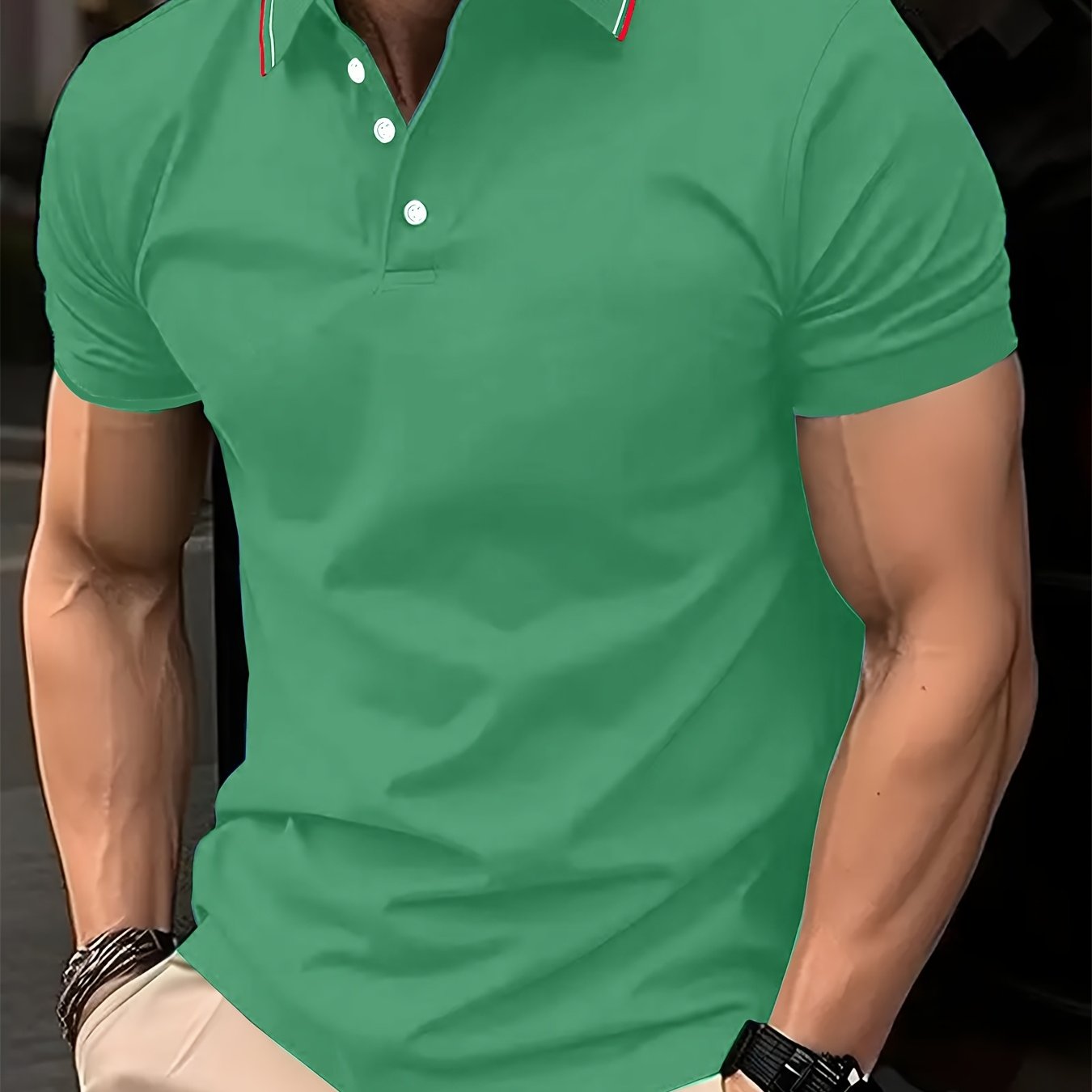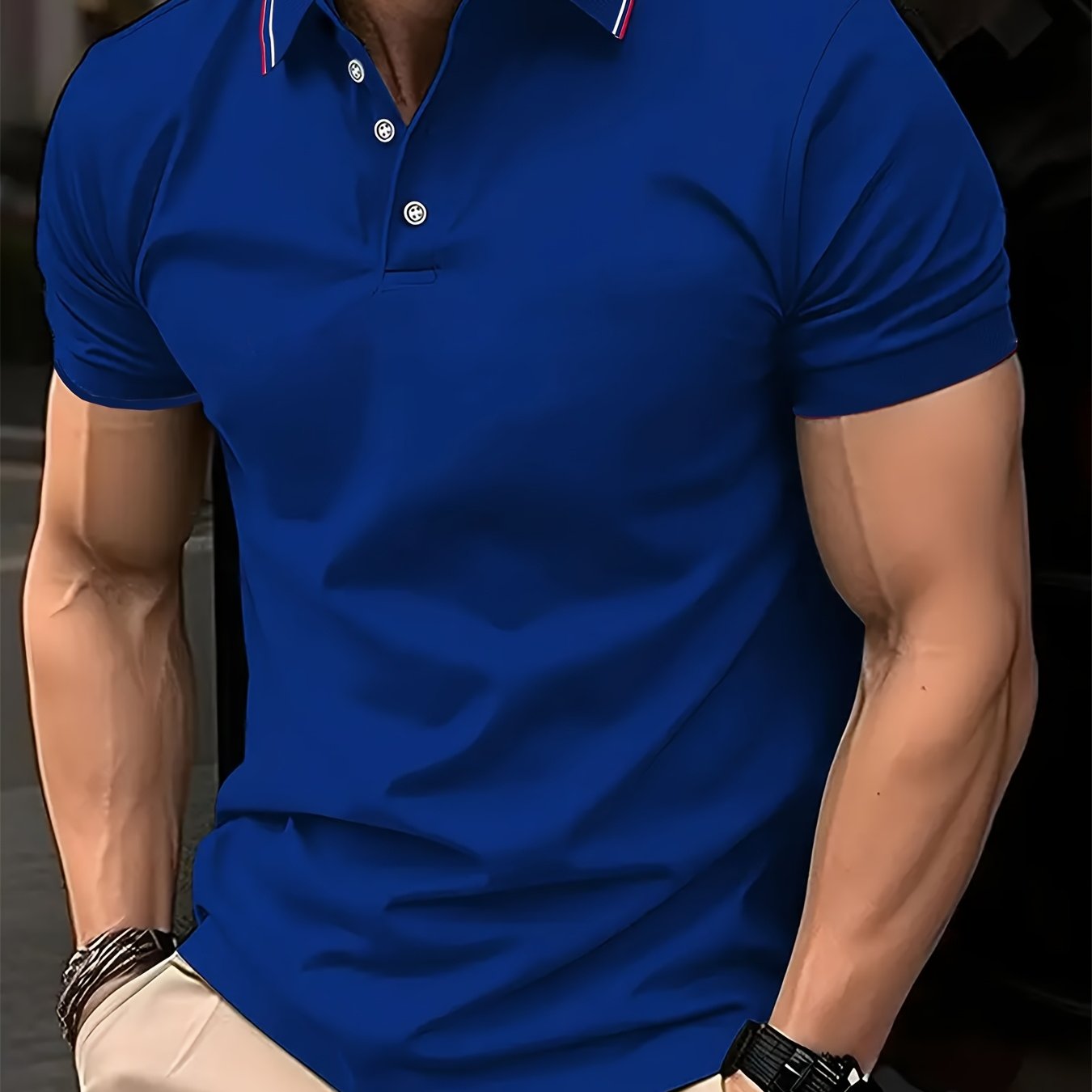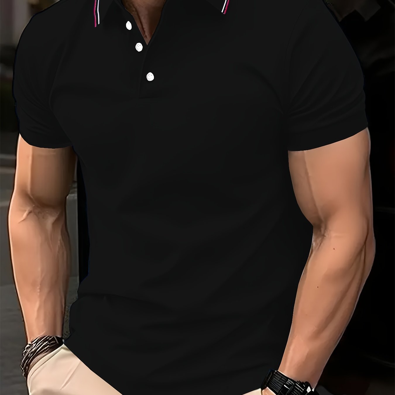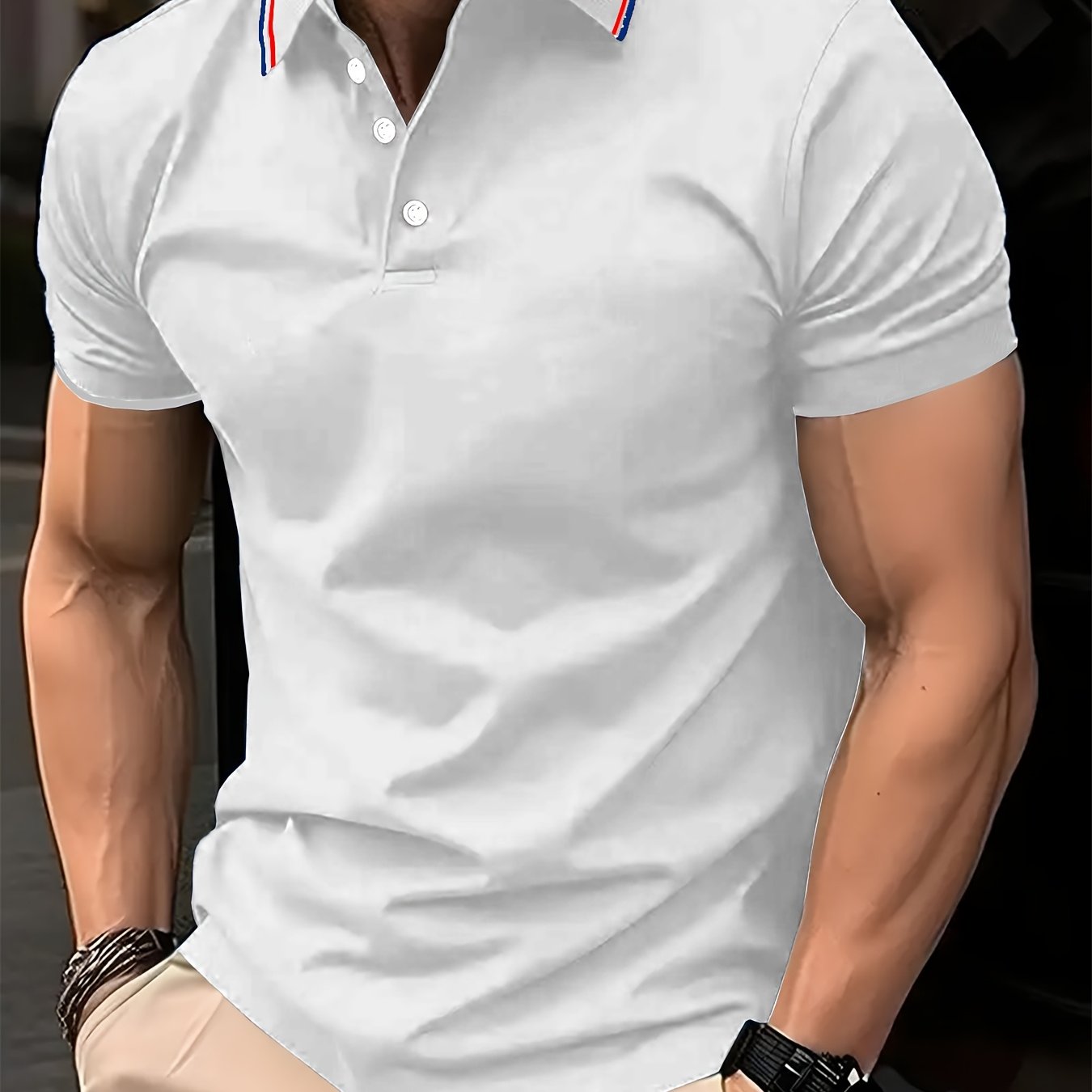Erkaklar uchun qarama-qarshi rangdagi yaka bilan polo koftasi