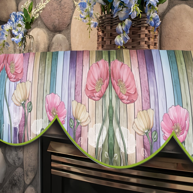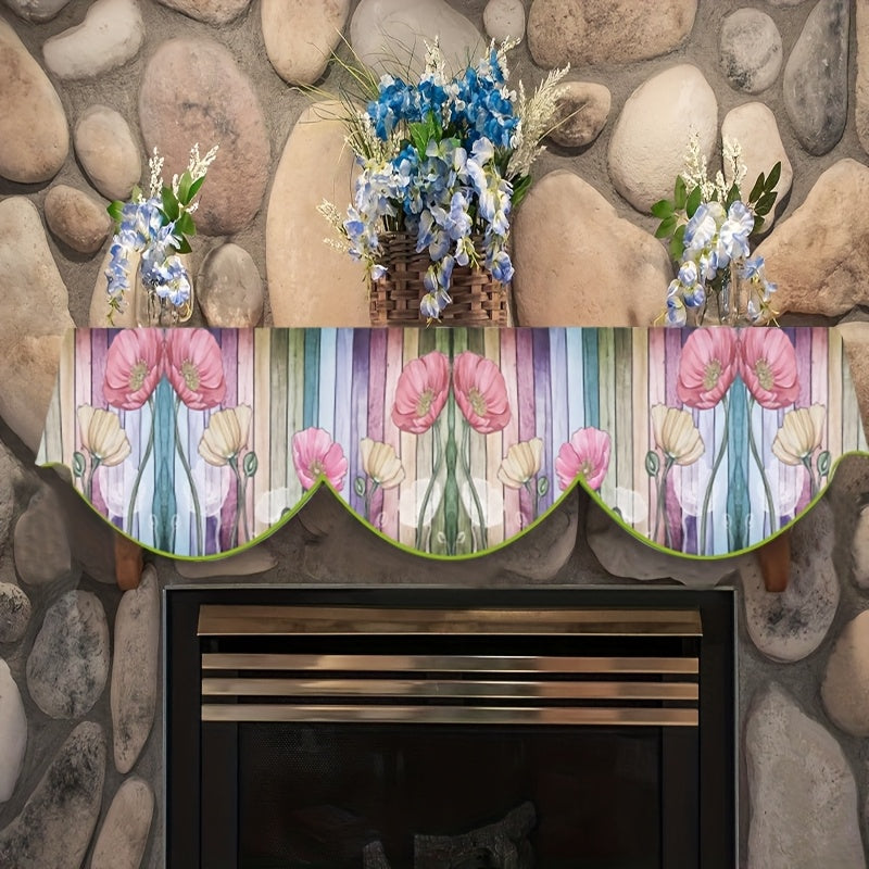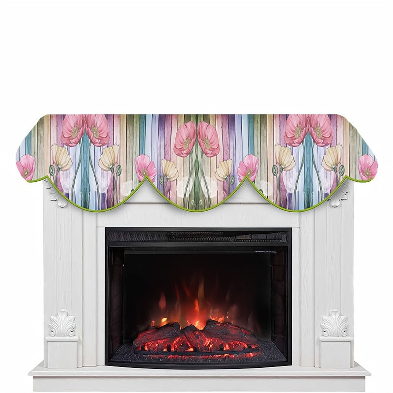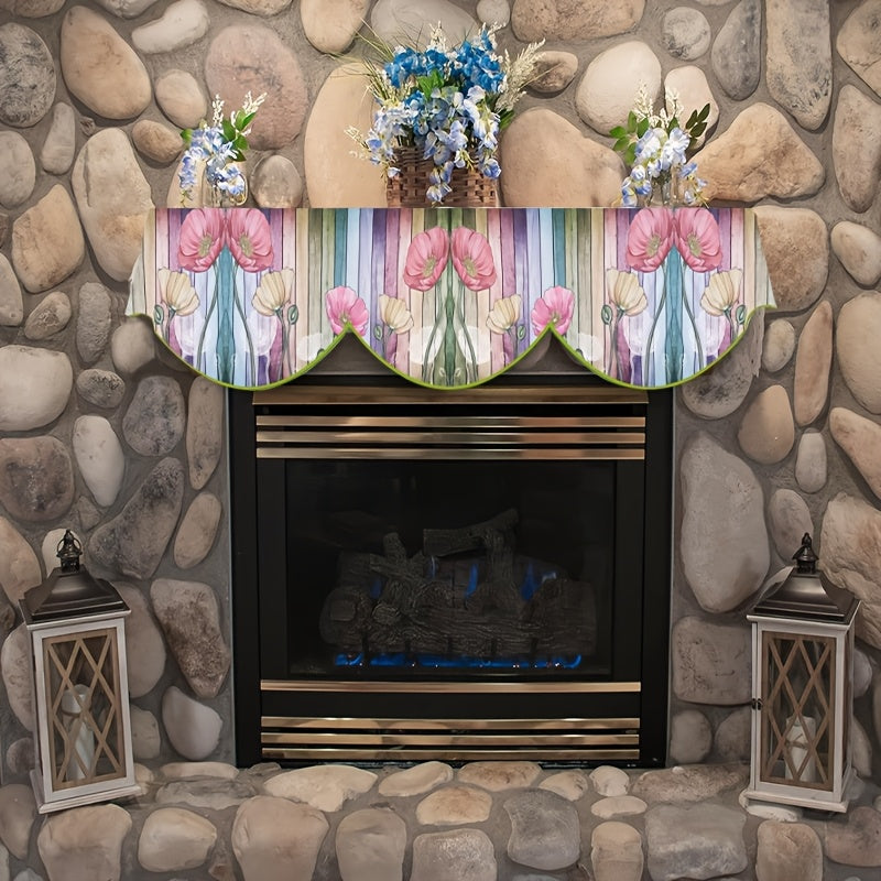 Poliester pechka mantel skarfi gullar dizayni bilan - mavsumiy uy bezaklari uchun mukammal, pechka eshigi oynasiga mos keladi, elektr energiyasi talab qilinmaydi, o'lchami: 49.78 sm x 199.9 sm.