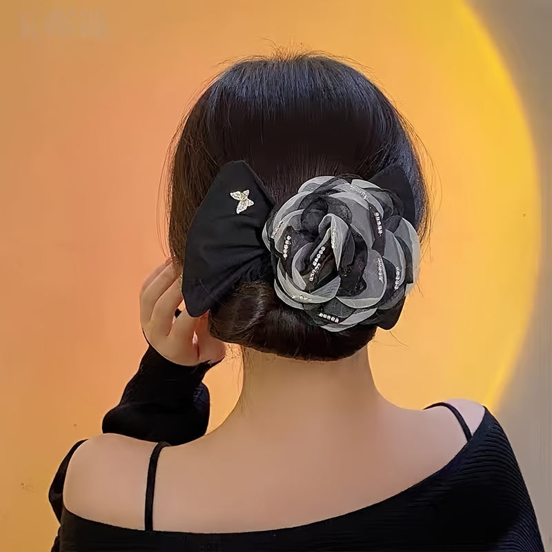 15 yoshdan oshganlar uchun polyester soch uslubi asbobi, kamon aksenti bilan, kundalik kiyim uchun mukammal.