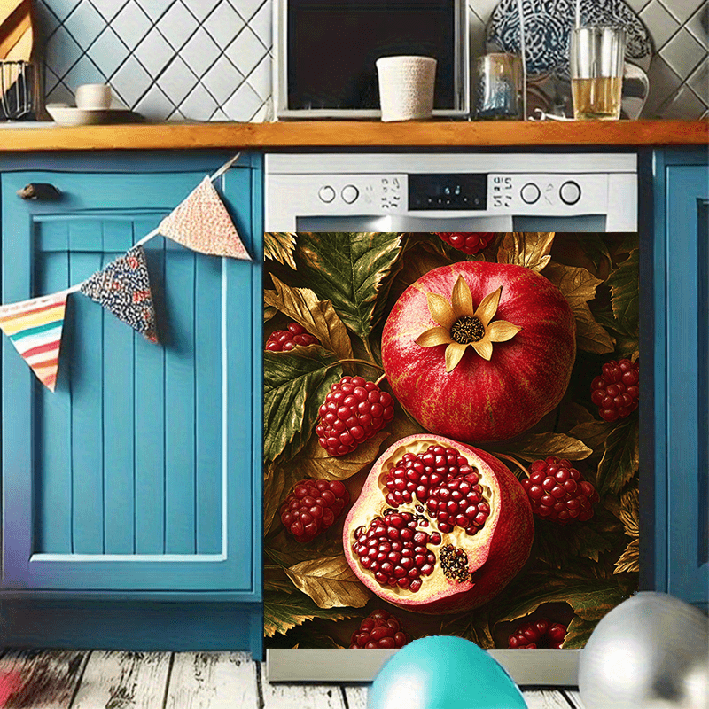 Anor mevali magnet stiker, suv o'tkazmaydigan PVC, oshxona texnikasi, muzlatgich, kir yuvish mashinasi, pech, 58x65 sm