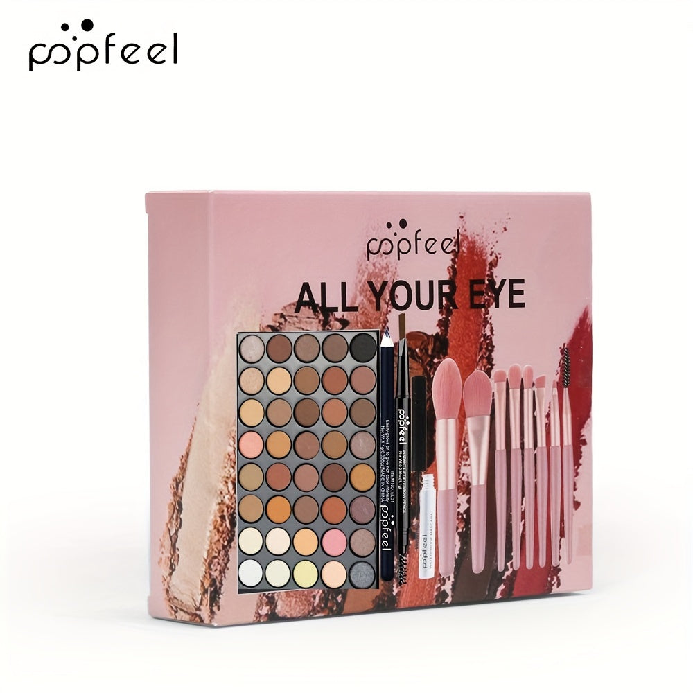 POPFEEL Ko'z Makiyaji To'plami 40 Rangli Ko'z Qovoqlari Palitrasi, Maskara, Qosh Qalam, Qosh Qalam, va 8 Qalam To'plamini o'z ichiga oladi.