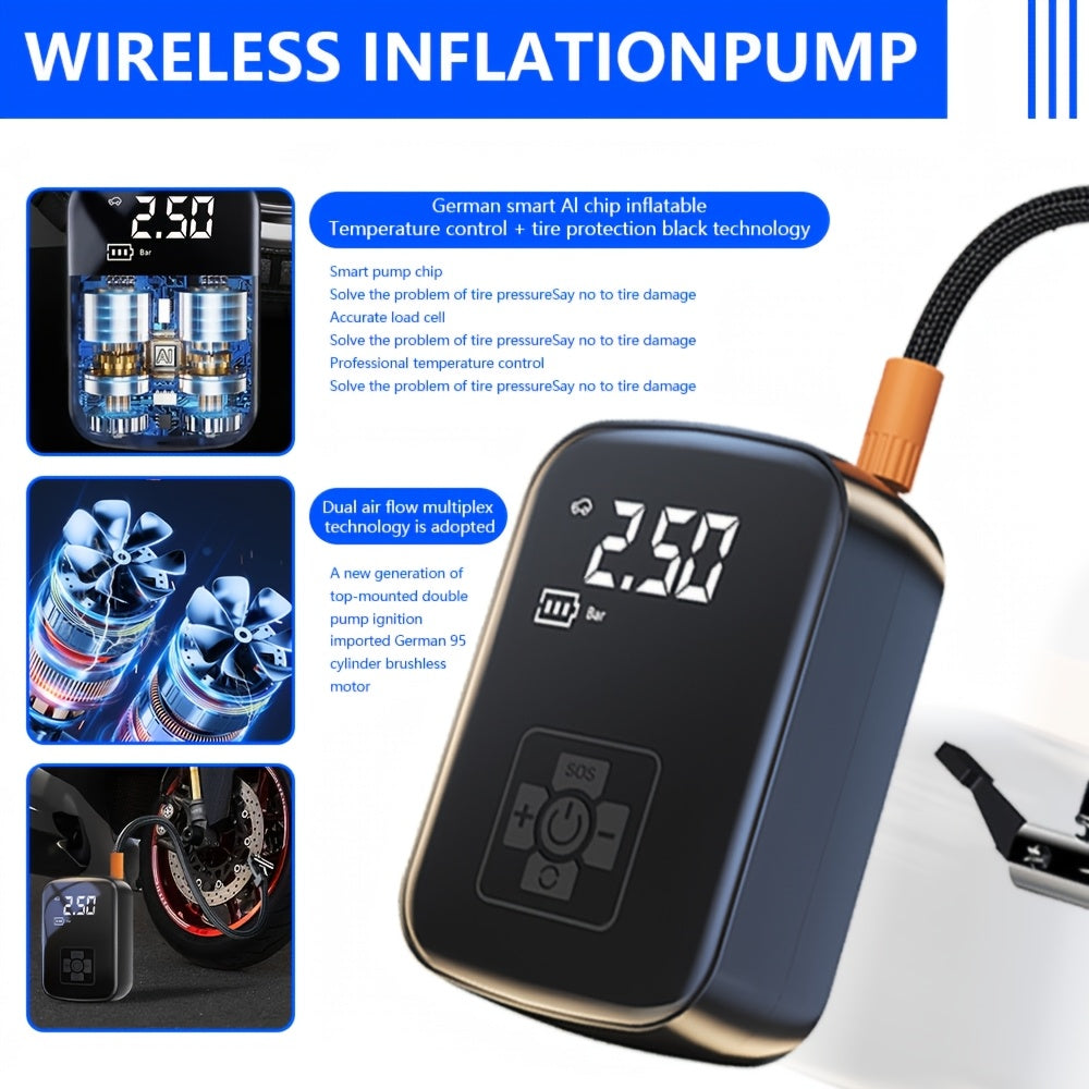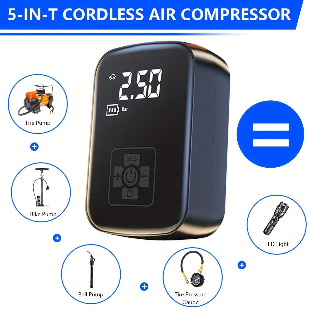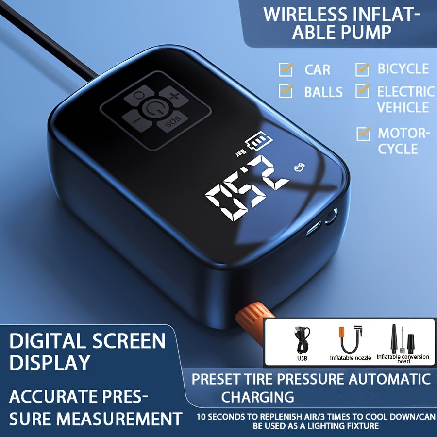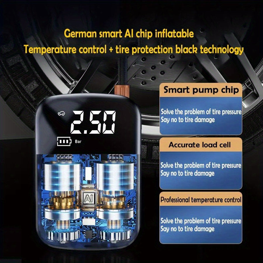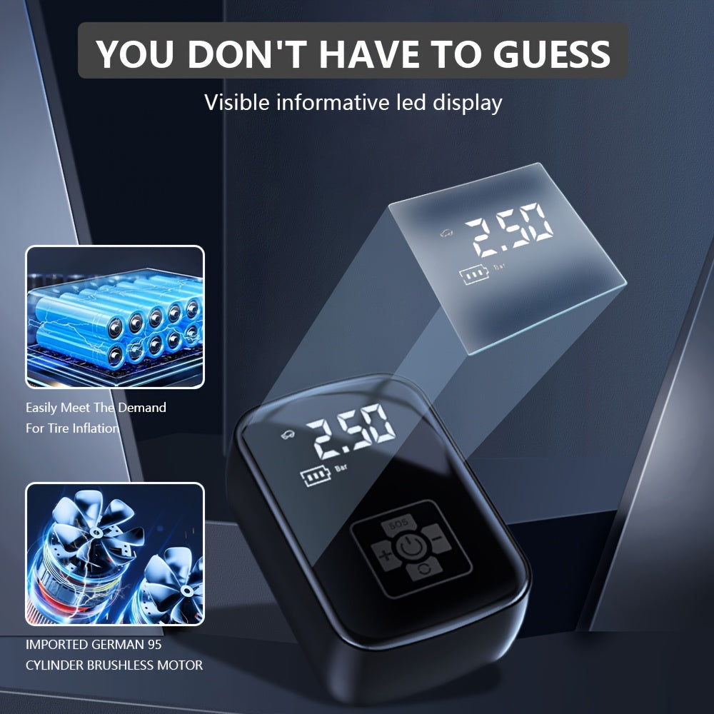 Raqamli bosim o‘lchagich va LED chiroq bilan portativ 150 PSI shina to‘ldiruvchi