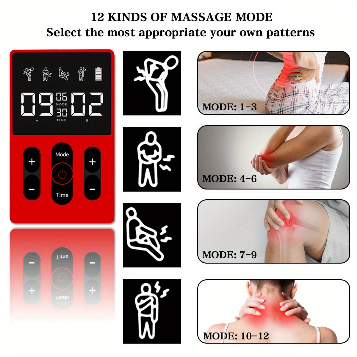 Portativ 4-in-1 massajchi, 36 kuch darajasi, 12 rejim va 6 vaqt sozlamasi bilan. Qayta zaryadlanadigan litiy batareyasi, USB zaryadlash, butun tana va teri massaji uchun ideal. Zamonaviy dizayn bilan