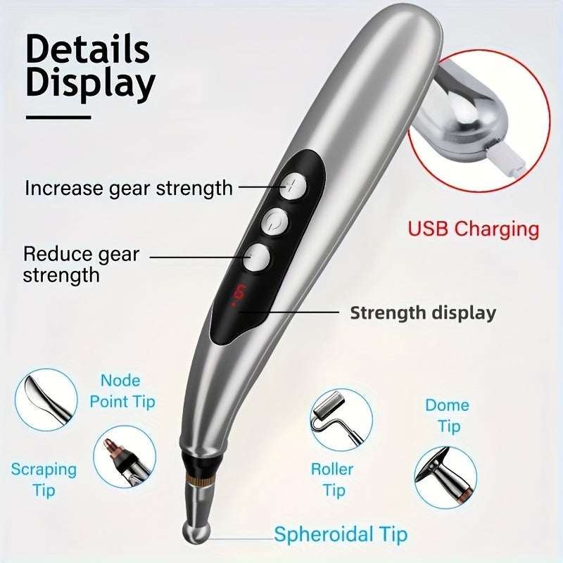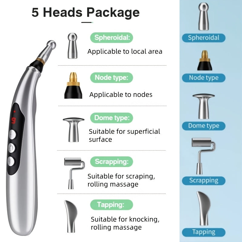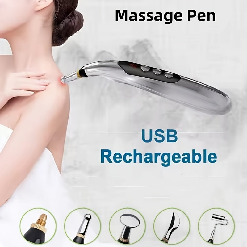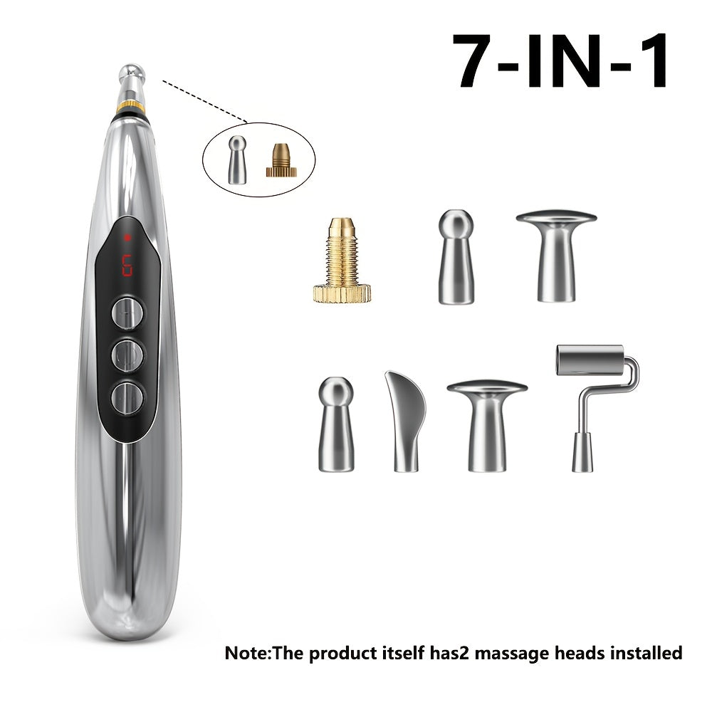9-rejimli sozlash va bir nechta massaj qalam boshlariga ega bo'lgan portativ 7-in-1 massaj qalam. Mukammal sovg'a.