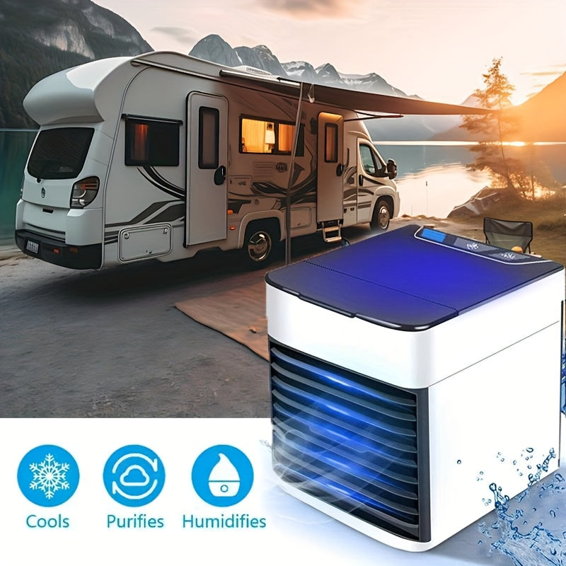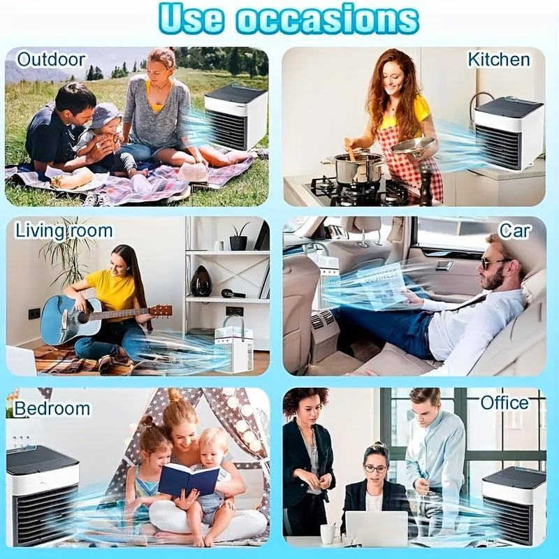 USB ulanishi bilan portativ havo konditsioneri ventilyatori, tozalovchi va namlantiruvchi, 7 rang, 3 tezlik, tez sovutish, shaxsiy foydalanish, ofis yoki uy uchun kompakt dizayn.