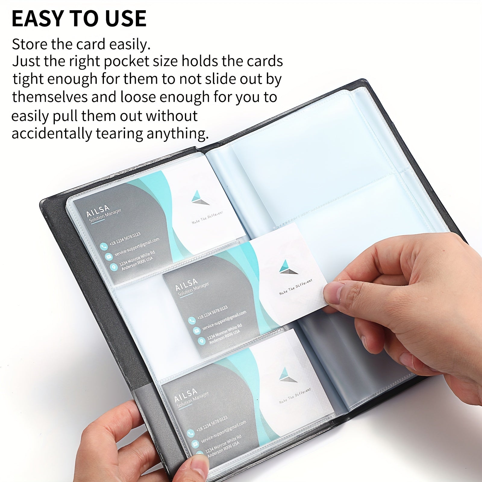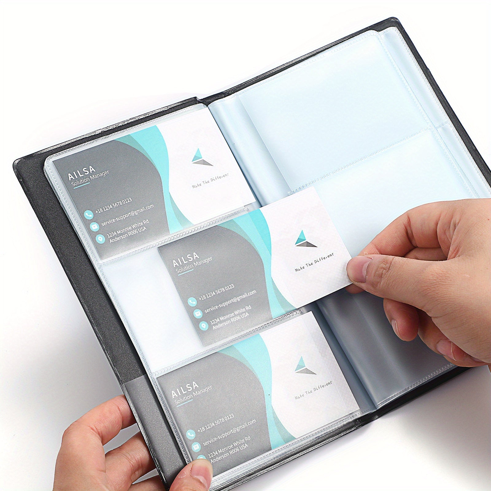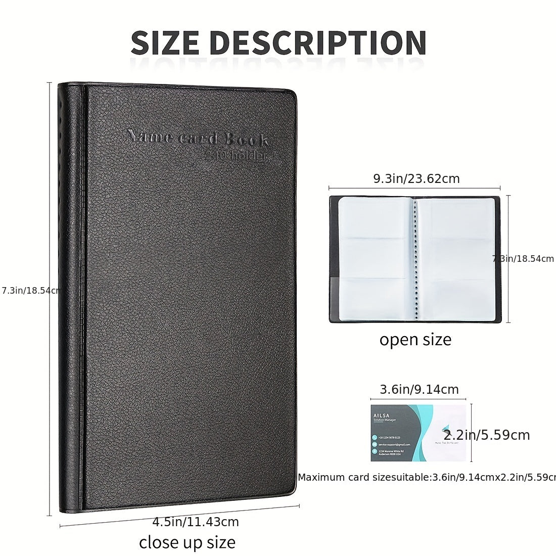 Erkaklar va ayollar uchun qora biznes karta saqlagichi, 240 ta karta sigʻimi bilan PVC choʻntaklar bilan tashkil etuvchi