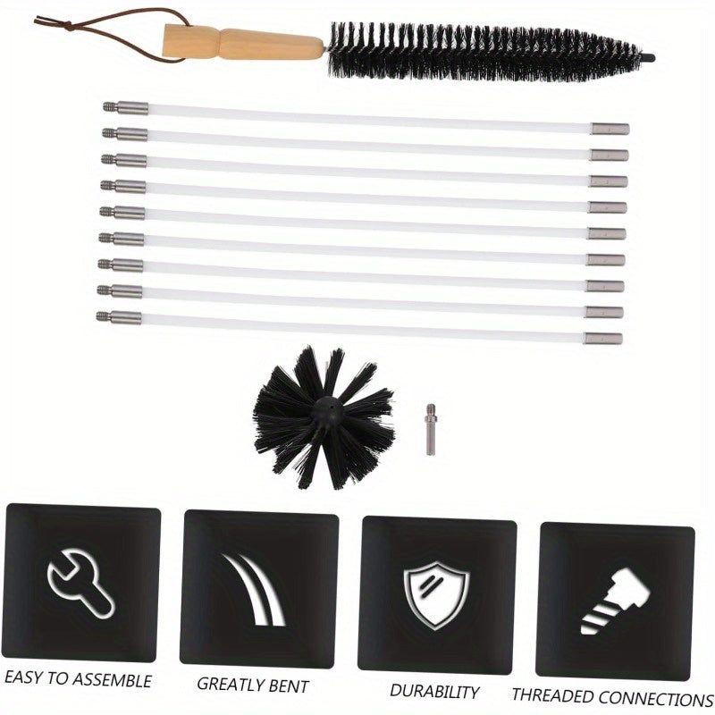 Portativ Chimney Tozalash Cho'tkasi To'plami - Mustahkam Galvanizlangan Temir Sim Cho'tkalar va Qulay Ventilyatsiya va Kanal Tozalash uchun Ergonomik Plastik Tutqichni o'z ichiga oladi - Foydalanish uchun oson tutqich va maxsus funksiyalarni taqdim etadi.