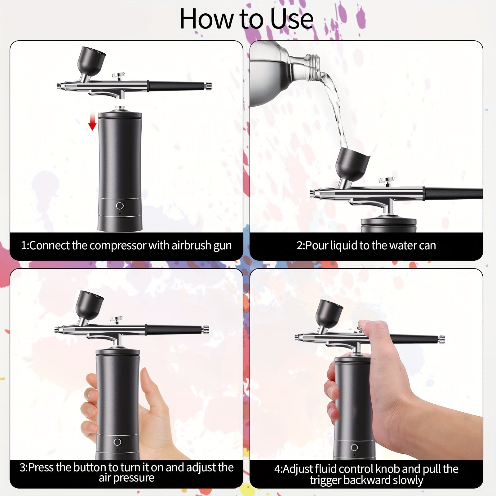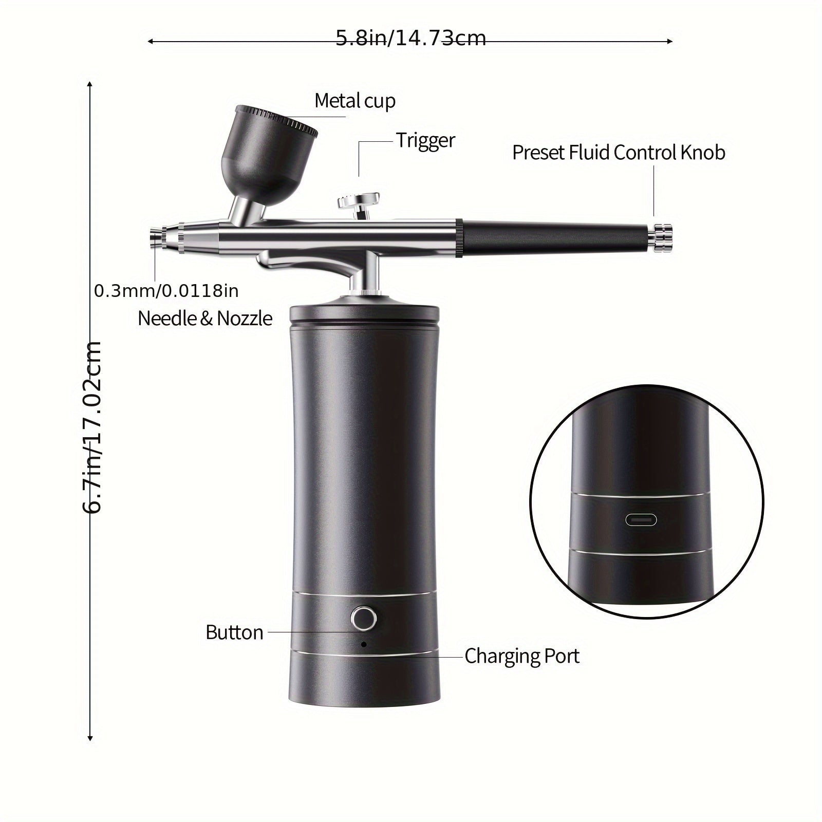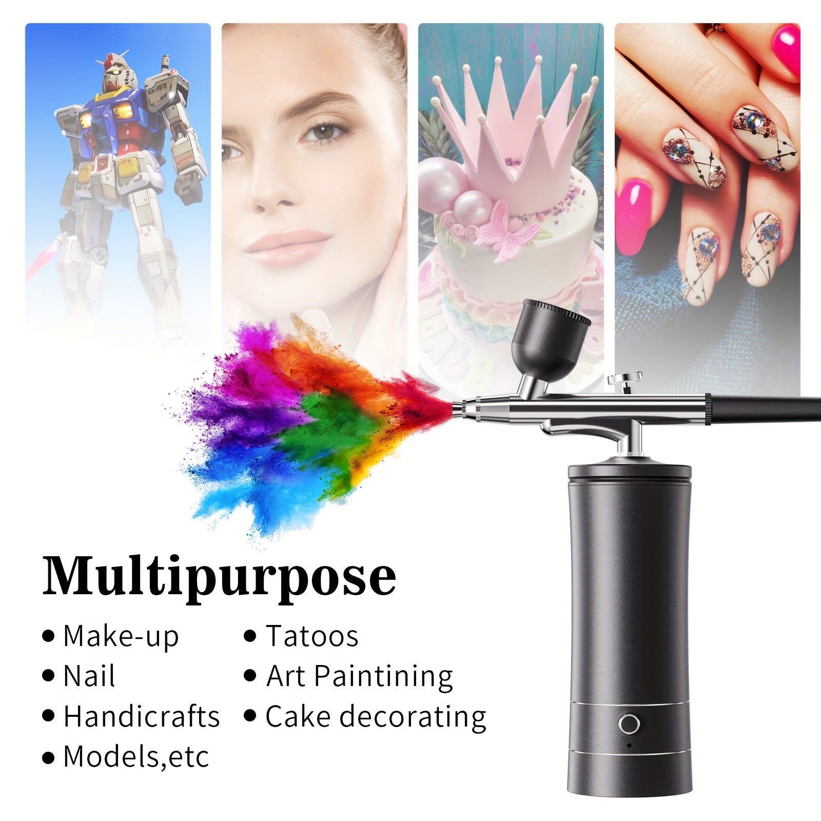 Turli ilovalar uchun portativ simsiz havo cho'tkasi to'plami, masalan, tirnoq san'ati, tort bezatish, makiyaj va model bo'yash. USB/batareya bilan ikki tomonlama quvvat, 900mAh sig'im.