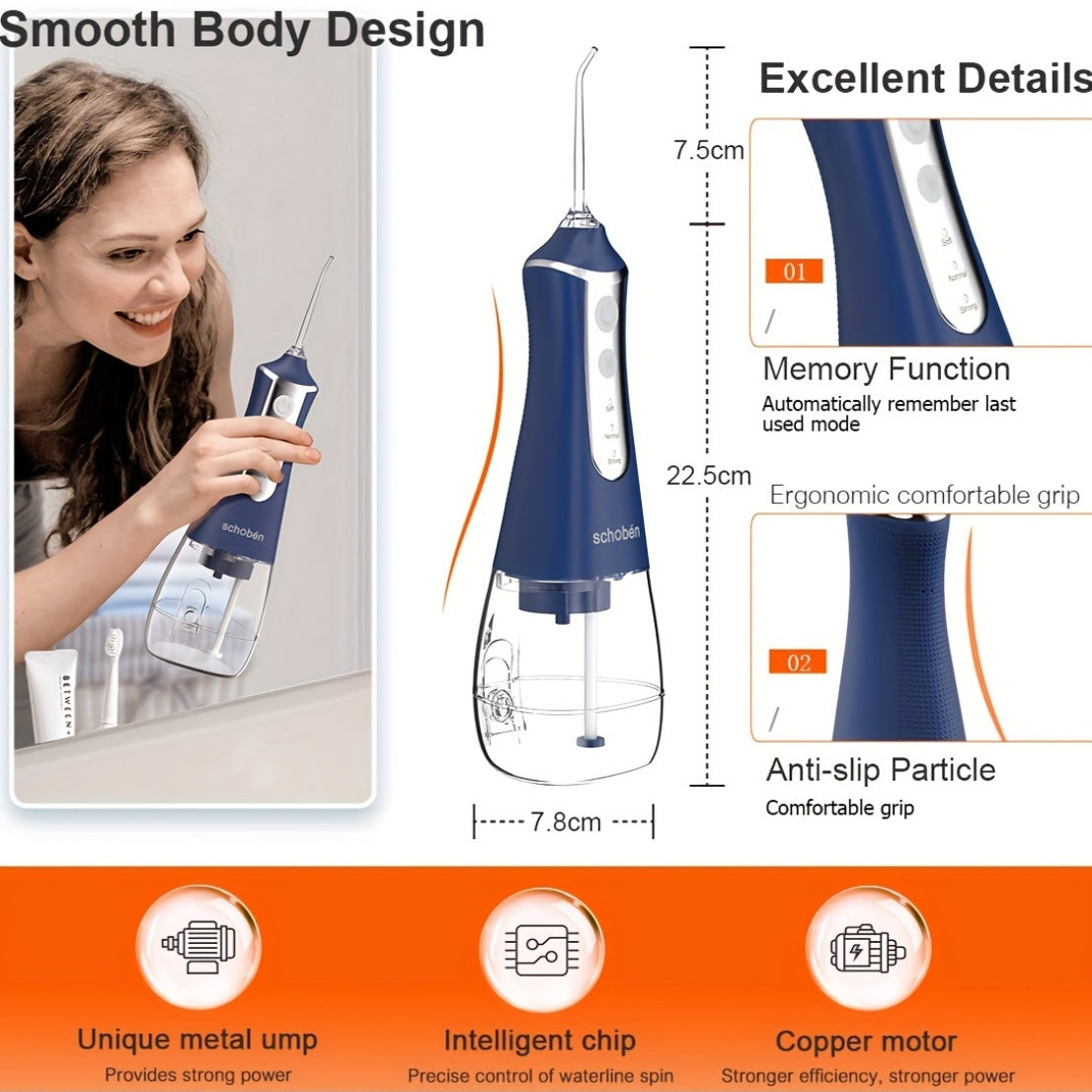 Portativ simsiz suv tozalash uchun tish cho'pkichi, 300ML suv tanki bilan