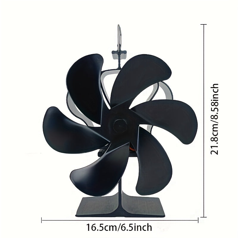 Portativ Crown uslubidagi 6-pichoqli alyuminiy pechka ventilyatori - issiqlik bilan ishlaydigan samarali havo aylanishi uchun anti-qizdirish tutqichi