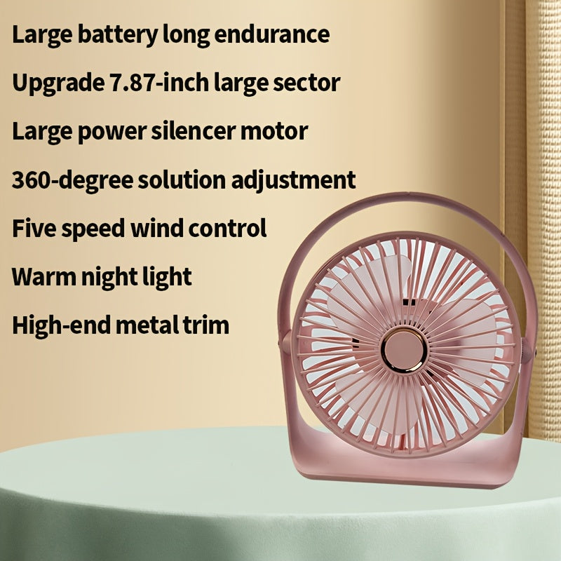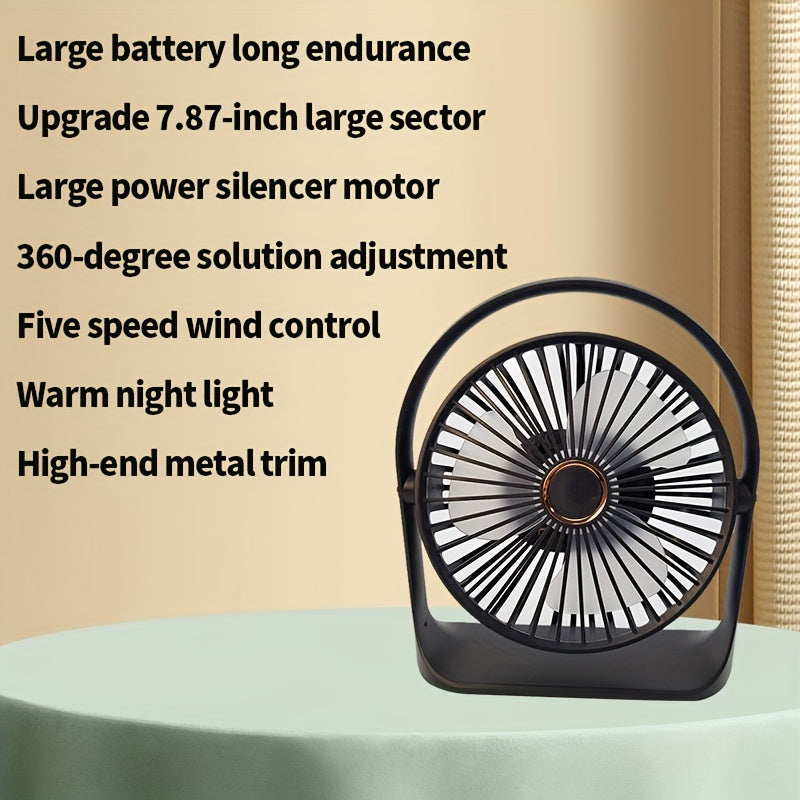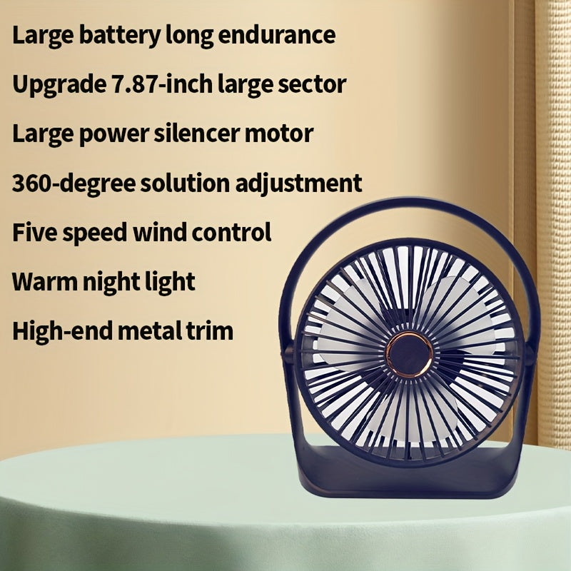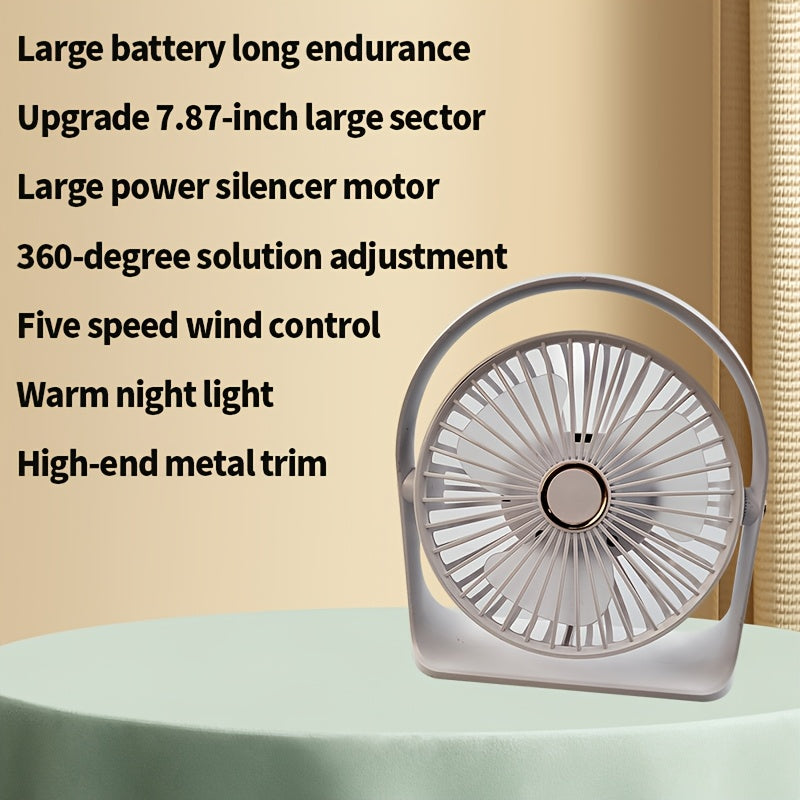 USB zaryadlash bilan portativ stol ventilyatori - turli xil va sozlanadigan 5 tezlik rejimlari, uy, ofis, yotoqxona, oshxona va o'qish uchun qulay havo oqimi - mukammal portativ va qulay