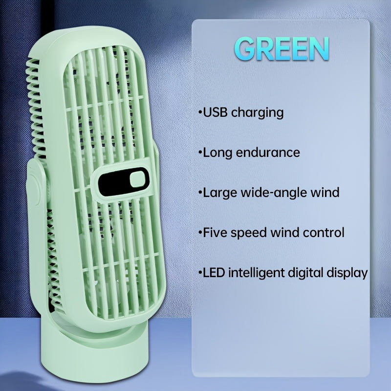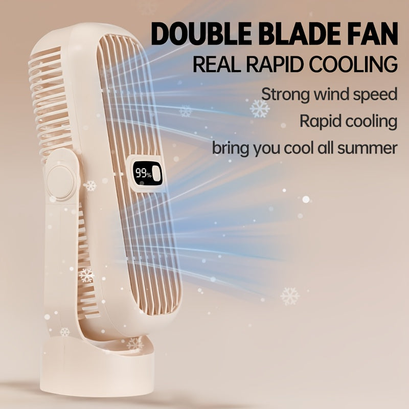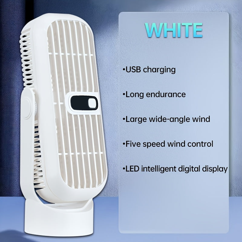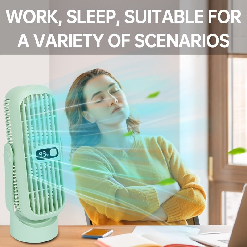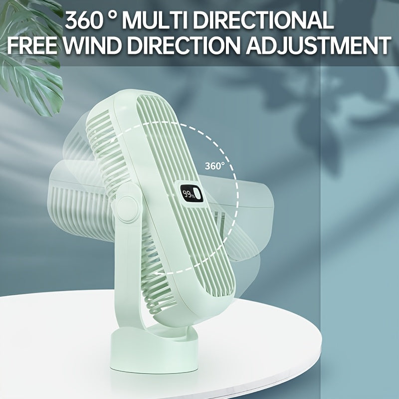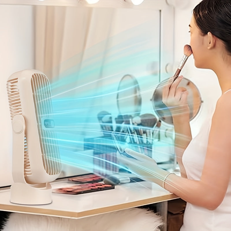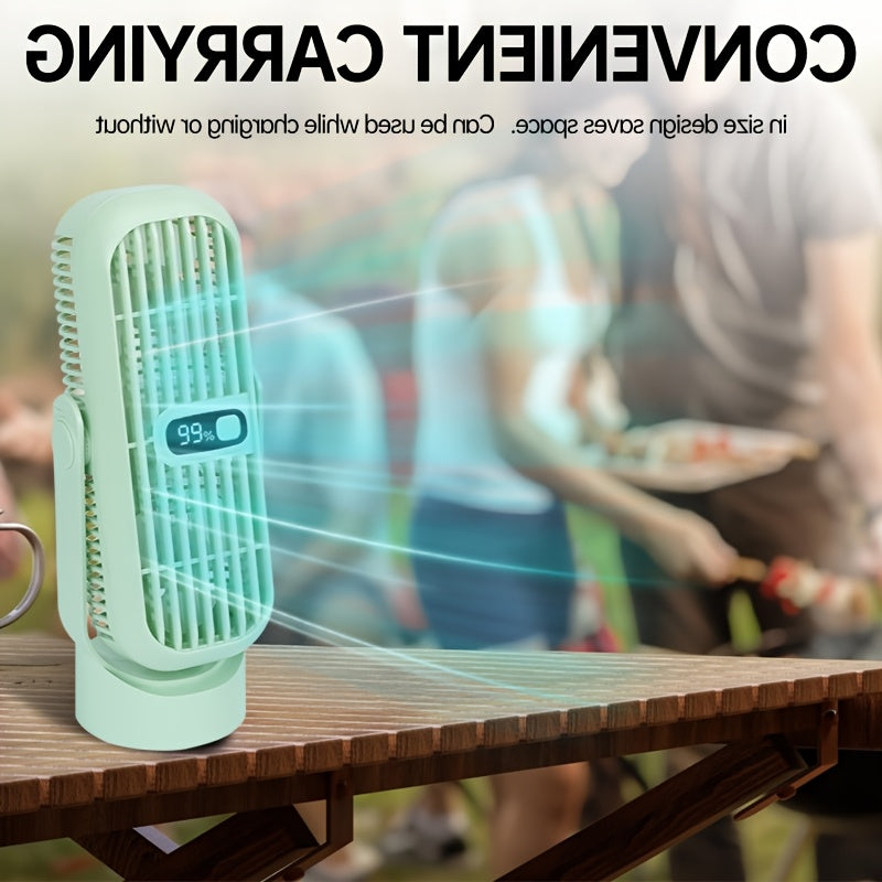 Raqamli displeyli portativ stol fanati, USB bilan qayta zaryadlanadigan, sozlanadigan havo oqimi