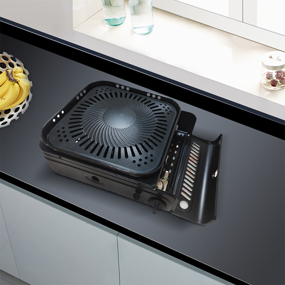 Sayohat va uy uchun portativ elektr pechka, 2300W kompaktdan stol usti grill, o'rnatilgan stand, spatula va xizmat qilish uchun likopcha bilan. Elektr energiyasi talab qilinmaydi, yengil va bardoshli dizayn uchun