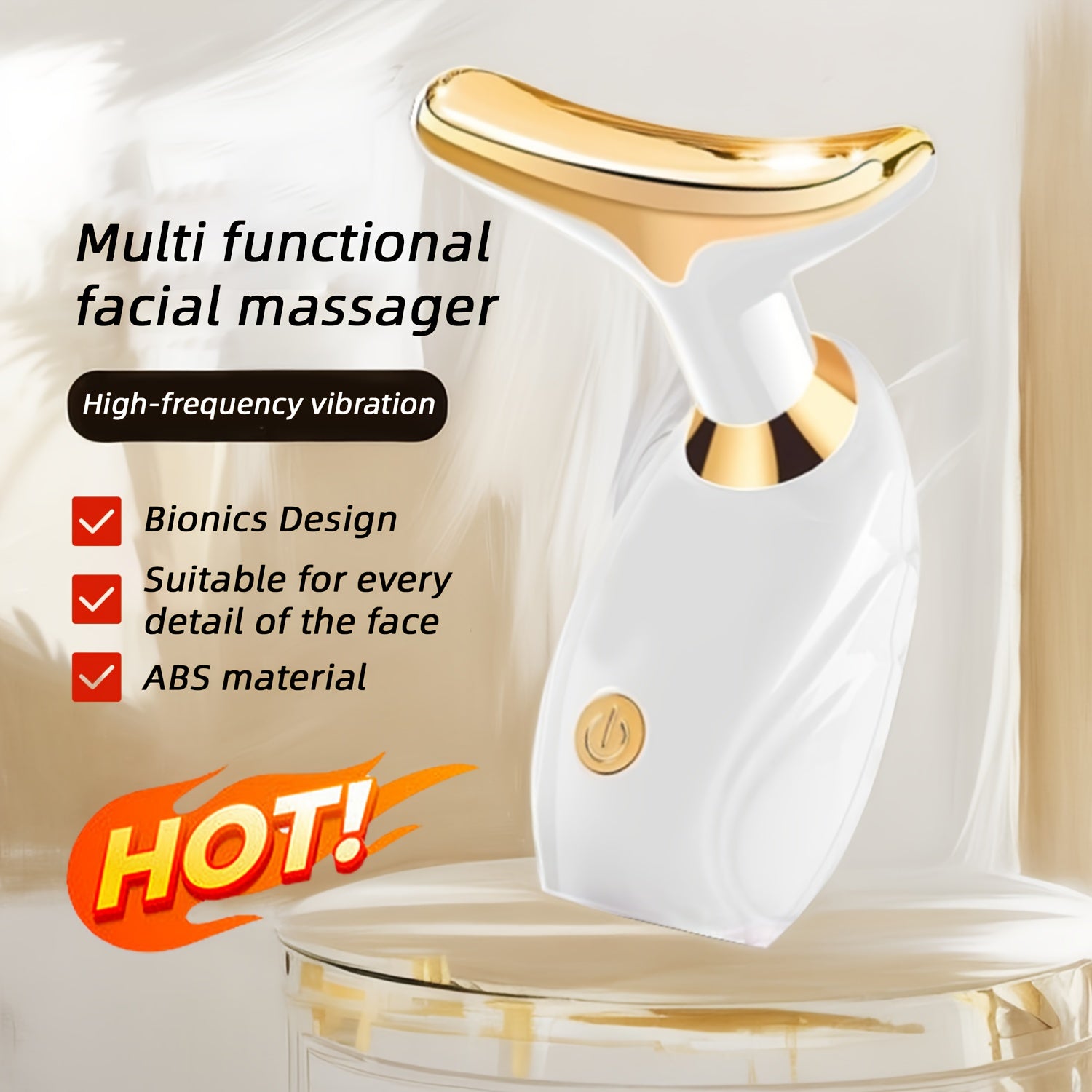 Portativ yuz va bo'yin massajeri, yuqori chastotali tebranish, ergonomik dizayn, oq va oltin rangda - 14-fevral, Onalar kuni, Otalar kuni, to'ylar va dam olish uchun ideal sovg'a. Yengil