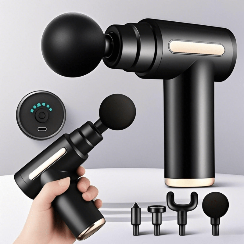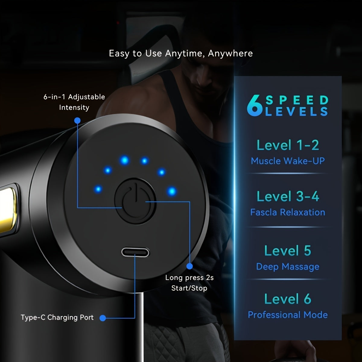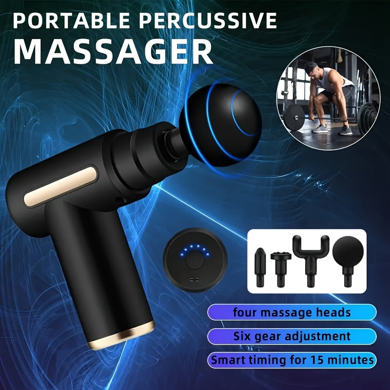 Portativ Fascia Massaj Qurollari, Qayta zaryadlanadigan 1200Mah Li-ion Batareya, 4 Ta O'zgaruvchan Massaj Boshliqlari, USB Zaryadlash, LED Sensorli Ekran, Plastik Tanasi, To'liq Tana Mushaklarini Qayta tiklash uchun, Sport