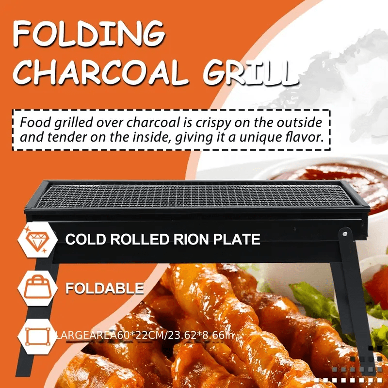 Mustahkam zanglamaydigan po'latdan tayyorlangan portativ bukadigan ko'mir grill, ochiq havoda BBQ partiyalari, lager va pikniklar uchun ideal. Qulay pishirish uchun yon tomonli qozon bilan kompakt dizayn.