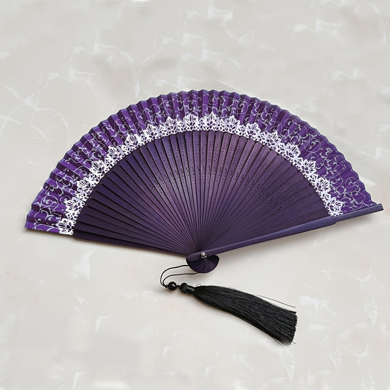 An'anaviy xitoy dantelli uslubida portativ egiluvchan ventilyator, yapon dizaynida bambukdan tayyorlangan. O'ziga xos retro madaniy sovg'a va shaxsiy foydalanish uchun mukammal cho'ntak ventilyatori.