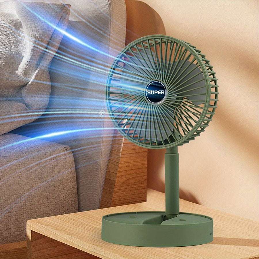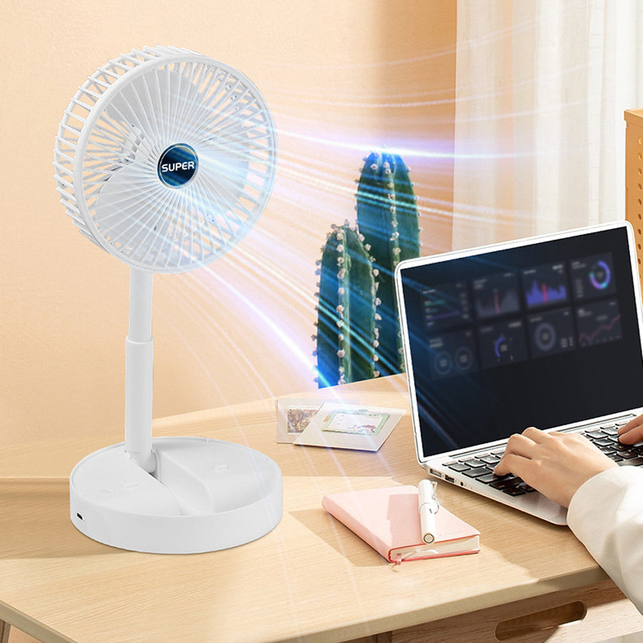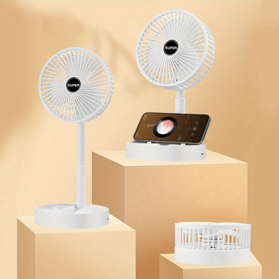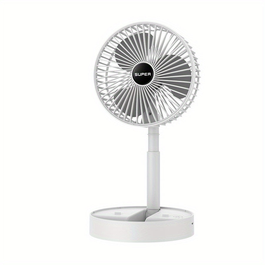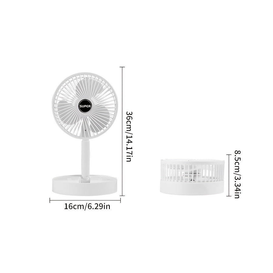 Portativ Qiyshayuvchi Ventilyator - Qulay va Ko'p Maqsadli, USB orqali Zaryadlanadigan, Stol va Tashqi Foydalanish uchun, Oq Rang, Ichki Lityum Batareya va Quvvat Kabeli bilan Birga Keltirilgan