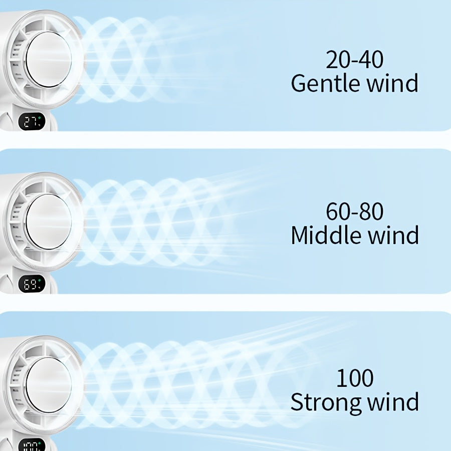 Portativ yig'iladigan qo'l fan, 100 tezlikli turbo, USB bilan qayta zaryadlanadigan, kiyish uchun mo'ljallangan dizayn