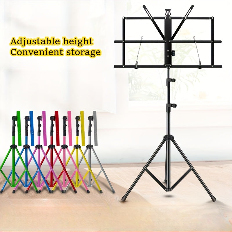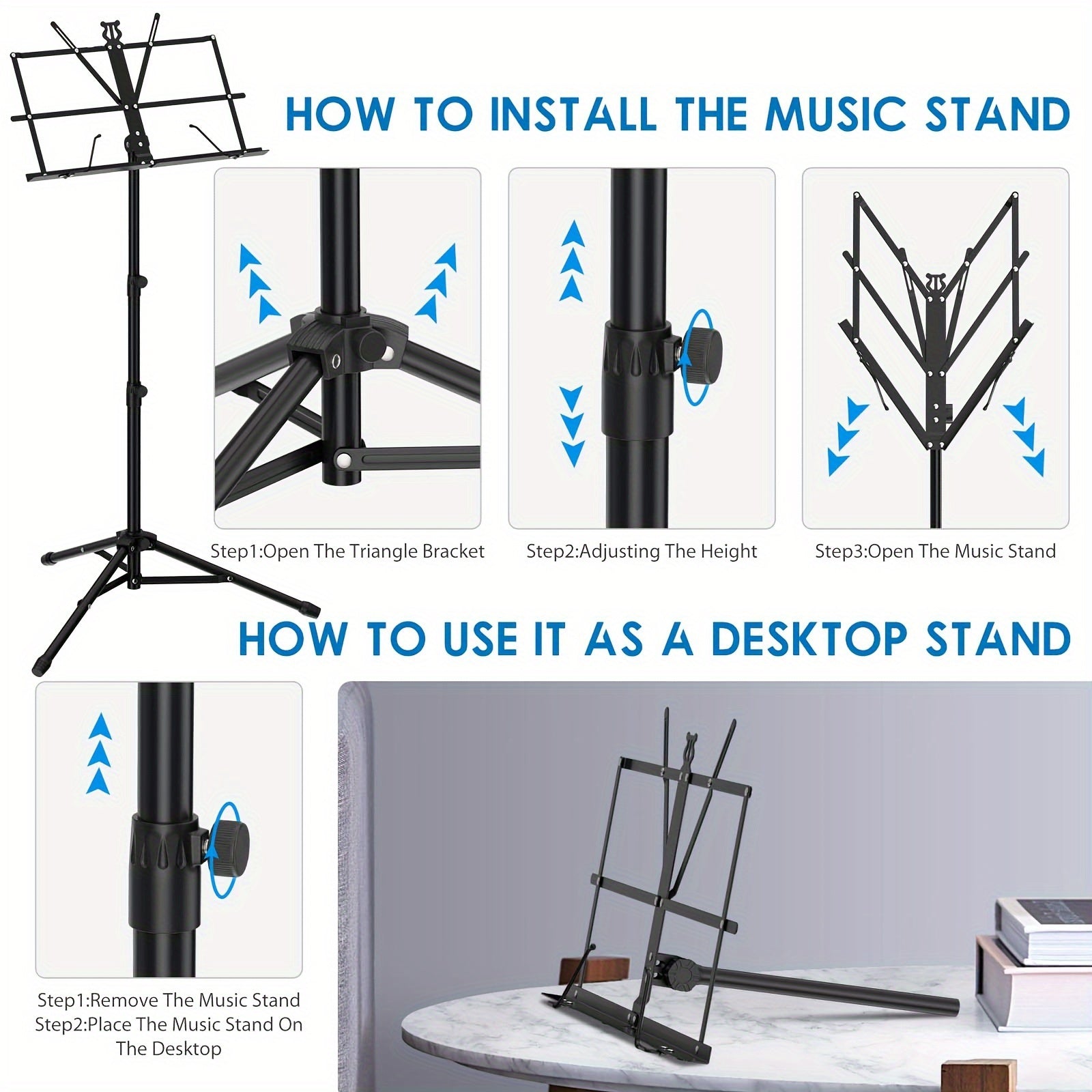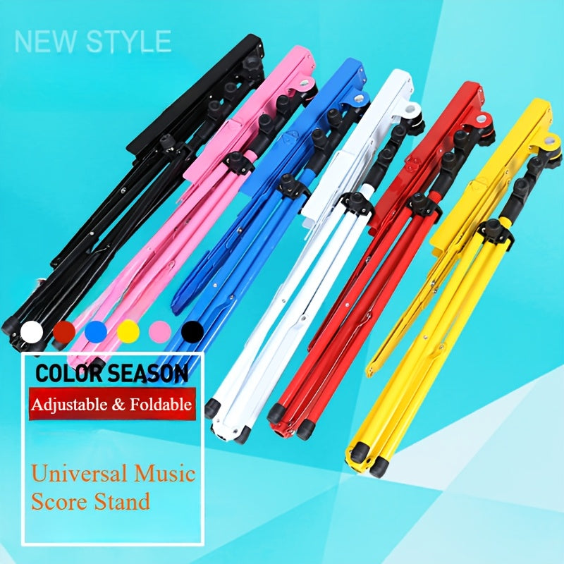 Piano, gitara, ukulele va skripka uchun portativ egiluvchan musiqa stendi, mustahkam qotishma konstruktsiyasi bilan.