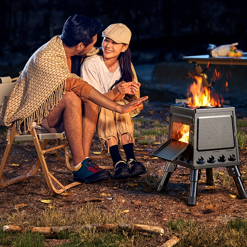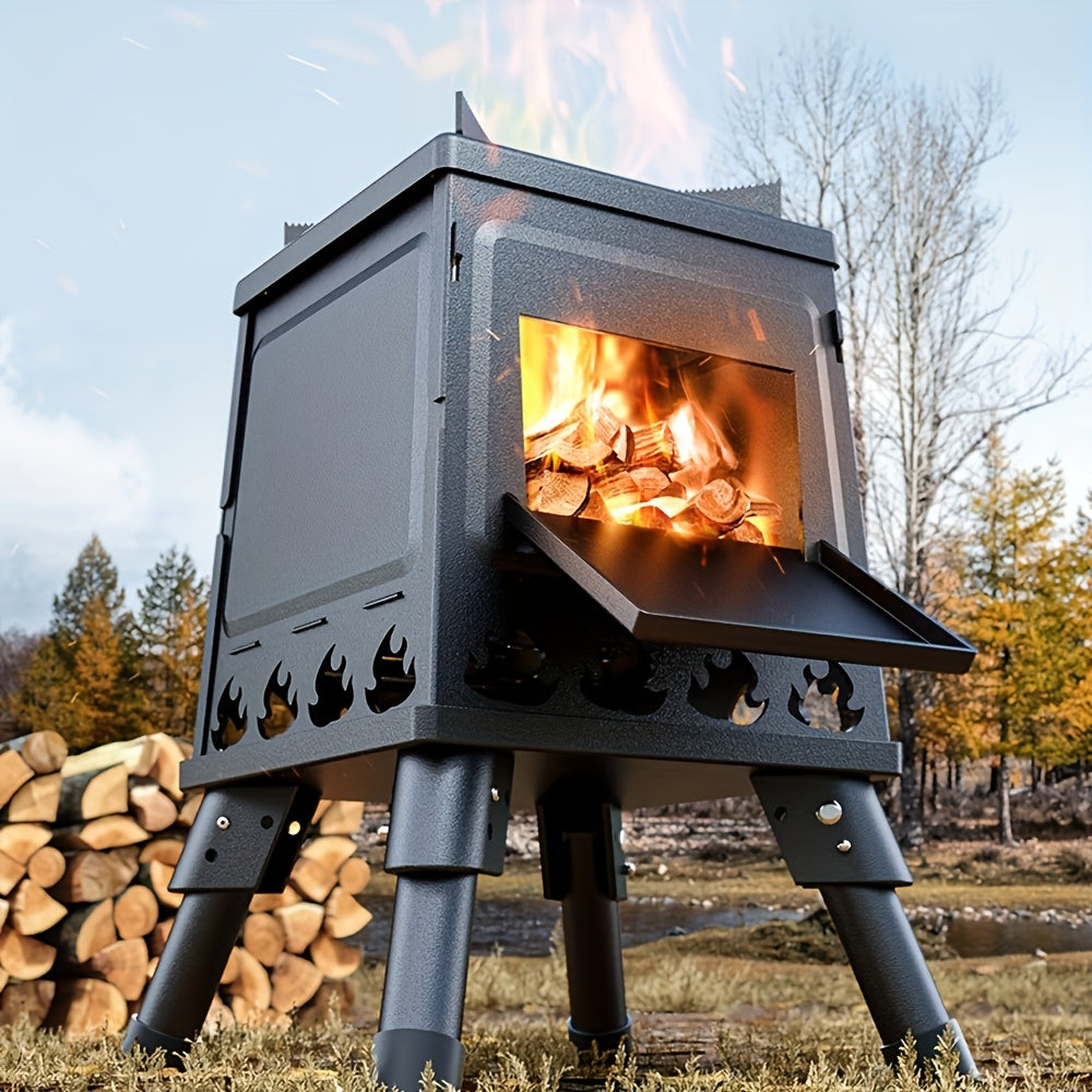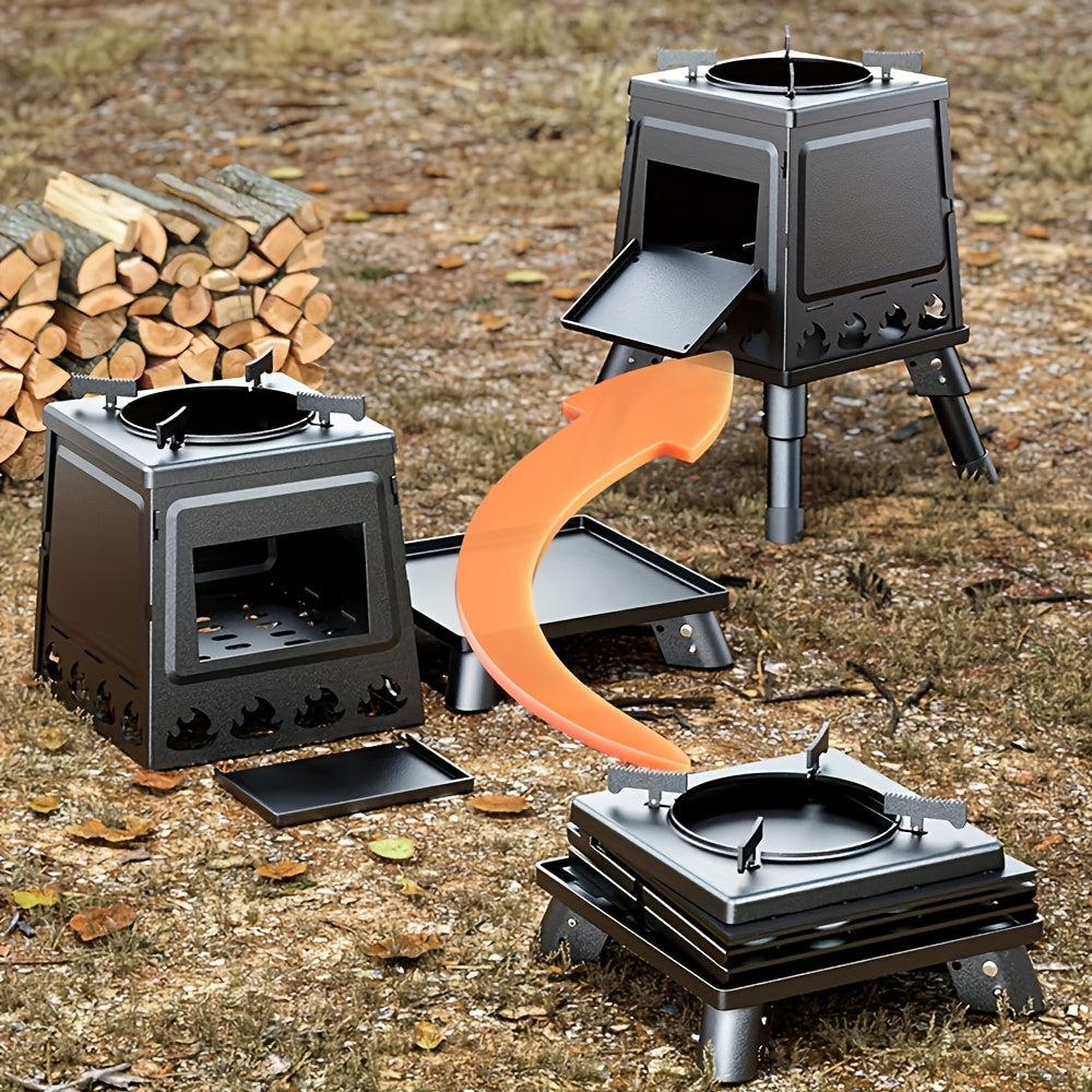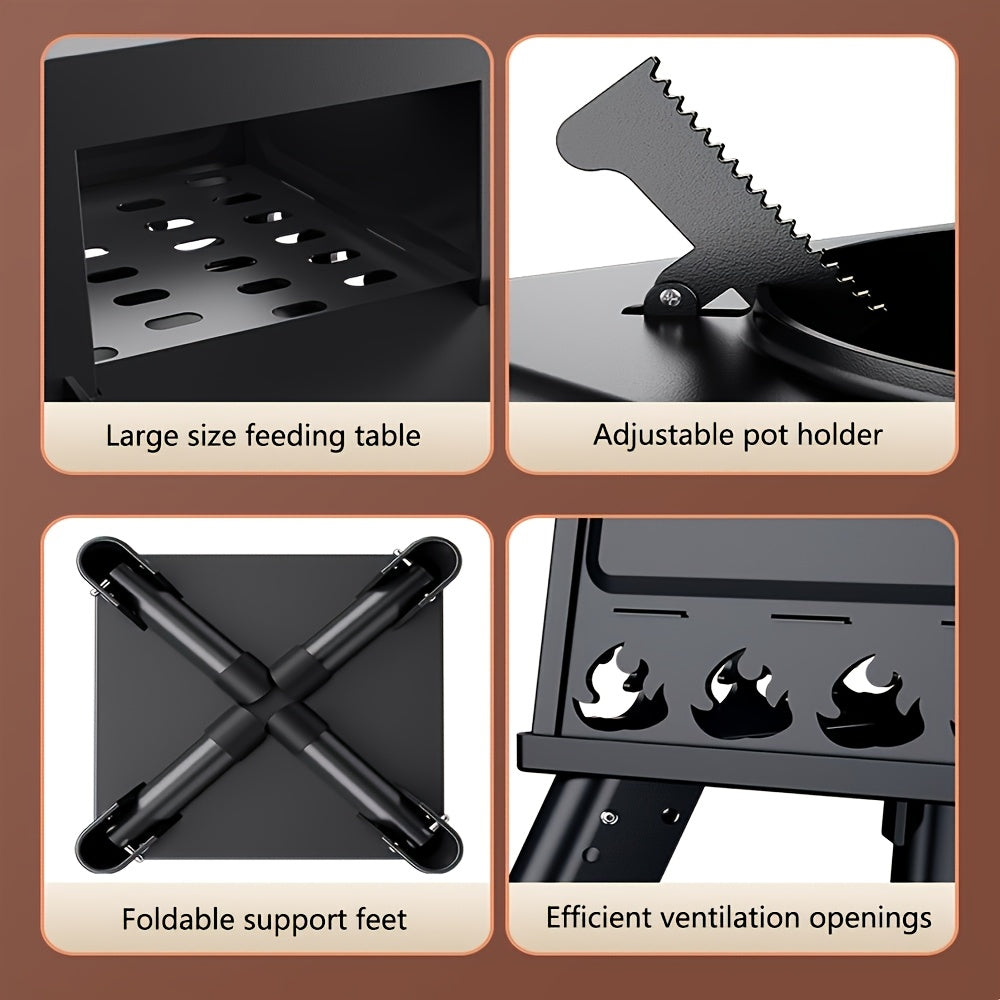 Sayohat va pikniklar uchun portativ egiluvchan yog'och pech, ko'p maqsadli ovqat tayyorlash uchun karbon po'latidan yasalgan.