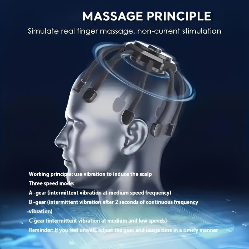 8 ta barmoq shaklidagi elektrodlar, 3 rejim, USB orqali zaryadlanadigan - chuqur dam olish, ideal ta'til sovg'asi, qulay joylashish bilan portativ bosh massaj qiluvchi.