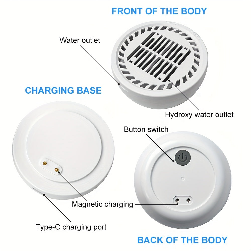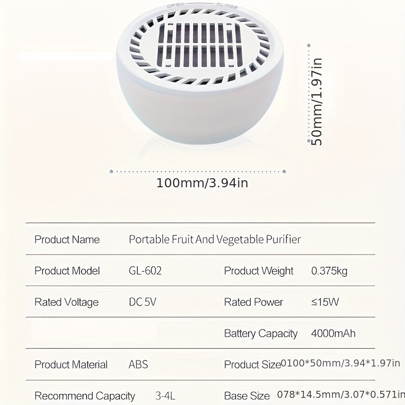 Meva va sabzavotlar uchun portativ vodorod suvi ionizatori - 4000mAh lityum batareyali USB quvvatlanadigan tozalash qurilmasi, yuqori samarali filtratsiya tizimi, oq ABS dizayni, oziq-ovqat uchun xavfsiz
