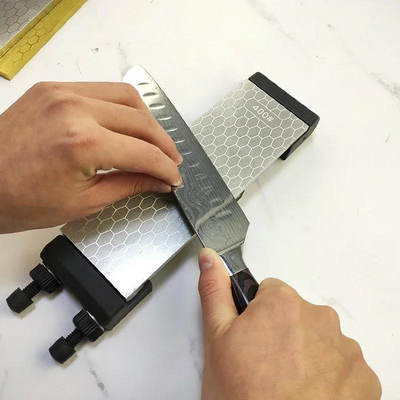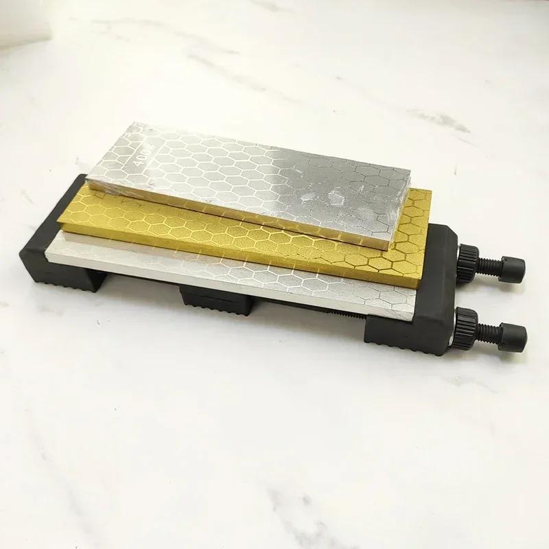 Oshxona va tashqarida foydalanish uchun olmos va qog'oz bilan qirqish asbobiga ega portativ pichoq silliqlash qurilmasi, olti burchakli naqsh va silikon asos bilan ta'minlangan.