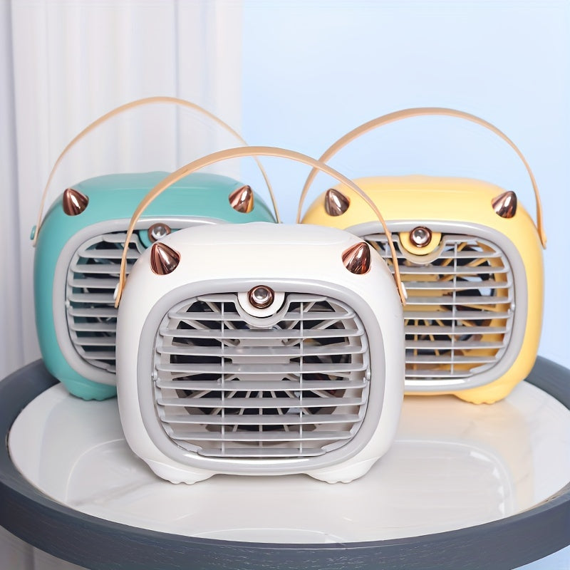 Portativ Mini Havo Sharoit Fan, Qo'l tutqichi bilan, USB orqali qayta zaryadlanadigan Elektr Stol Fan, 3 tezlikda suvni sovutuvchi fan, USB Type-C orqali qayta zaryadlanadigan namlantiruvchi fan - Do'stlar uchun mukammal oilaviy tug'ilgan kun sovg'asi.