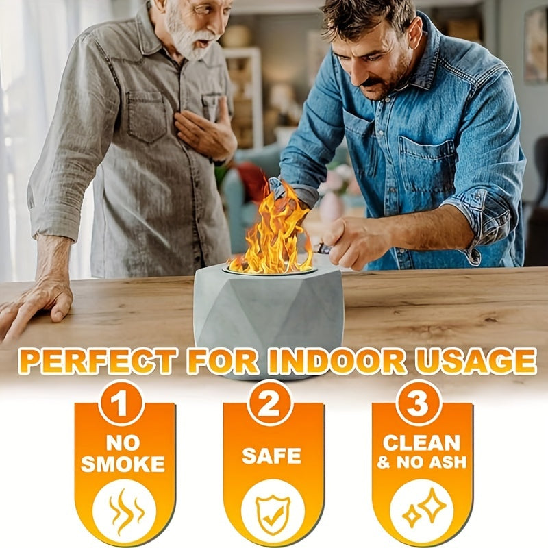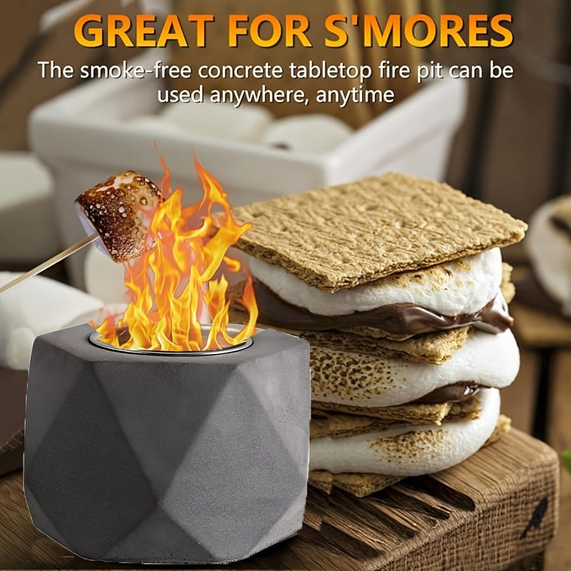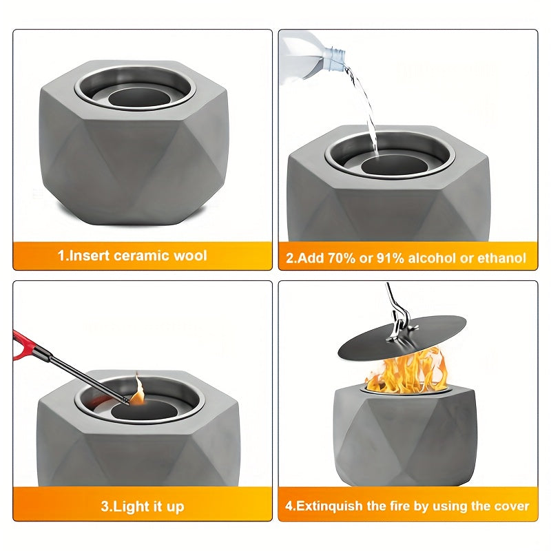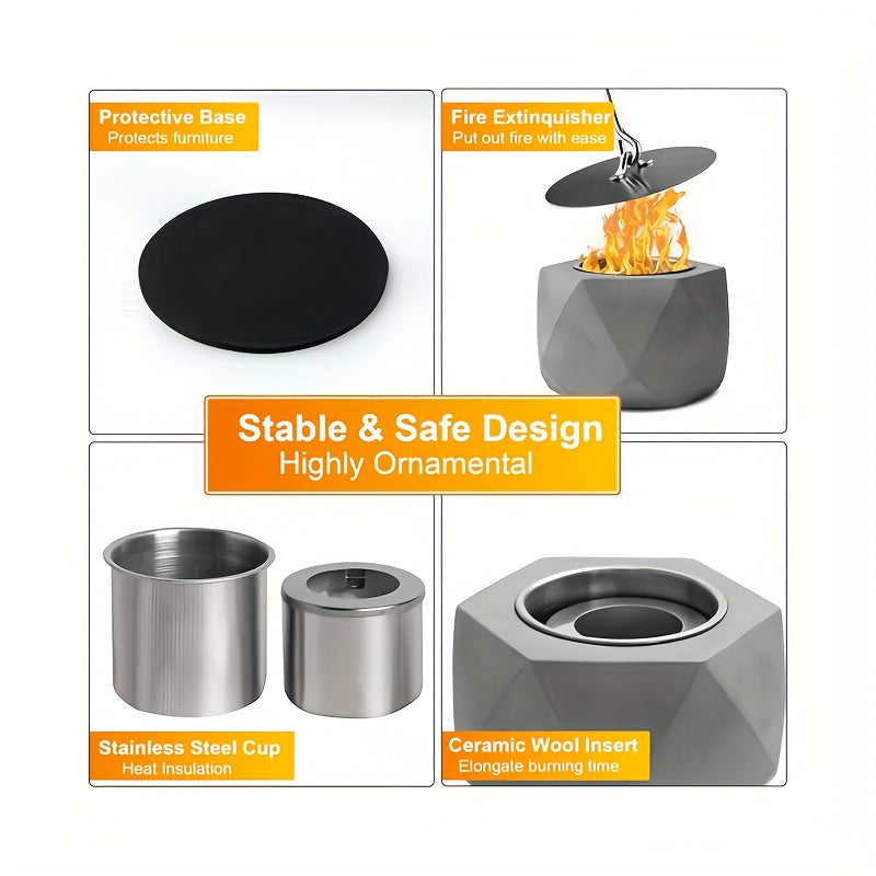 Portativ Mini Spirtli Yoqilg'i Yoqish Teshigi, Tutun chiqarmaydigan Beton Stol Ustiga, O't o'chiruvchi bilan birga - Ichki va Tashqi Bezash uchun Ideal, Qish uchun Ventilyatsiyalangan Metall Kamina