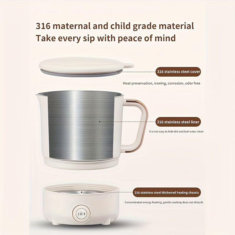 304 ta zanglamaydigan po'latdan yasalgan portativ mini elektr pechka, buklanuvchi induksiya issiq qozon, qopqog'i, bardoshli ABS tutqich va 1-2 kishilik sig'imga ega. Yevropa standarti rozetkasi bilan jihozlangan, ideal uchun