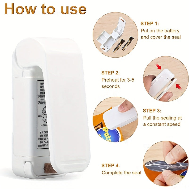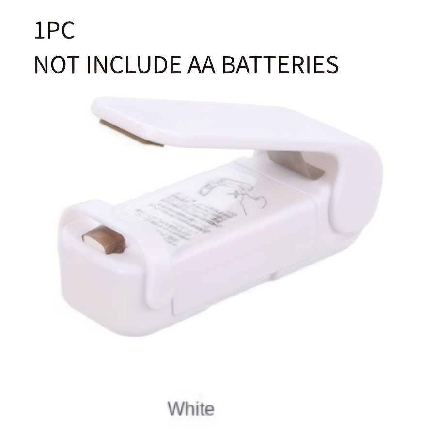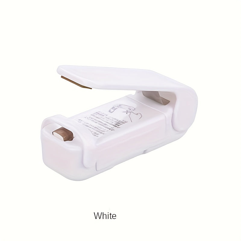 Plastik paketlar uchun portativ mini yopishtiruvchi mashina, atıştırmalık paketlash uchun ideal. Oq, qo'lda, batareyali. Batareyalar kiritilmagan.