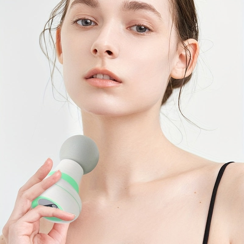 USB orqali zaryadlanadigan 400mAh batareyaga ega, oq va yashil dizayndagi portativ mini aqlli mushak massaj quroli, chuqur to'qima massaji uchun ergonomik bitta qo'l bilan ushlash.