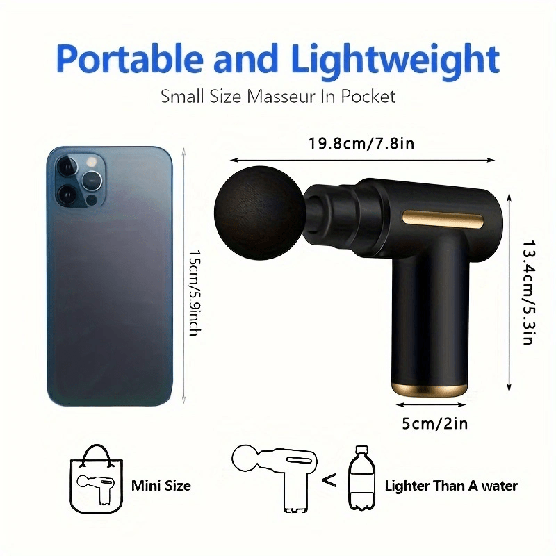 [Portativ Mushak Massajchisi] Qayta zaryadlanadigan LED ekran, 4 ta almashtiriladigan bosh, 1200mAh litiy batareya, USB zaryadlash bilan chuqur to'qima zarbali massaj quroli