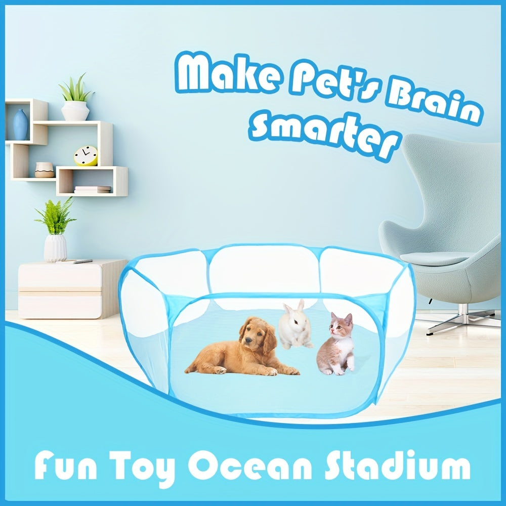 Uy hayvonlari, mushuklar va kichik hayvonlar uchun egiluvchan to'siq bilan portativ o'yin maydoni - xavfsiz va qulay.