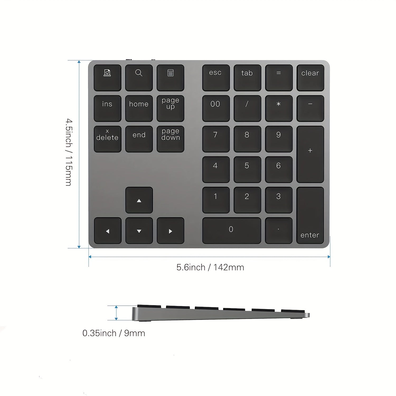 USB zaryadlash bilan portativ qayta zaryadlanuvchi simsiz raqamli klaviatura, 110mAh batareya, Type-C zaryadlash. Noutbuklar va mobil qurilmalar uchun ixcham dizayn, qora tugmalar, mustahkam tugma qoplamasi materiali.