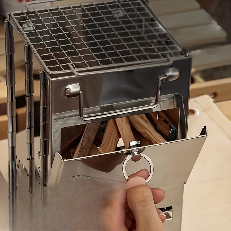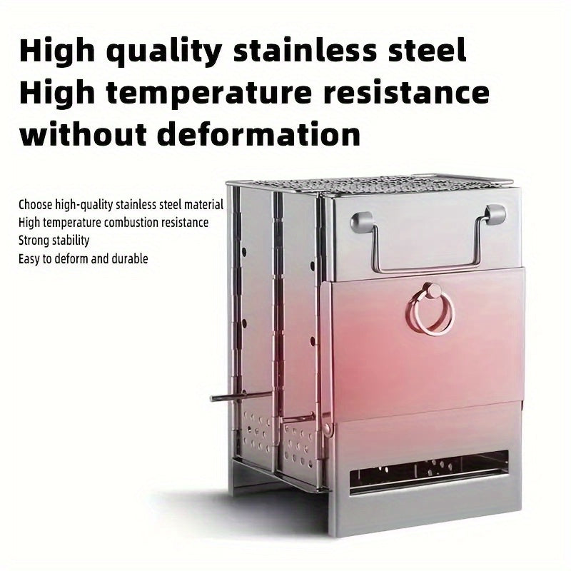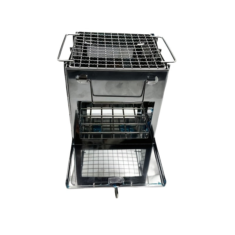Saqlash sumkasi bilan portativ zanglamaydigan po'latdan yasalgan tashqi pech, pikniklar, BBQlar va tabiatda sayohatlar uchun yig'iladigan va chirishga qarshi. Ko'p maqsadli foydalanish uchun bardoshli konstruktsiya.