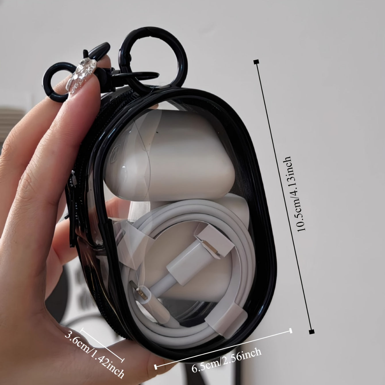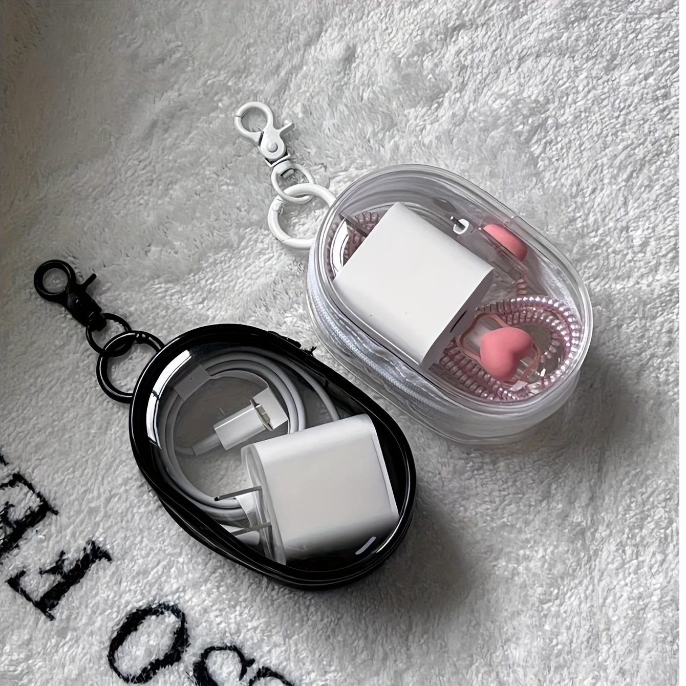 Quloqchinlar va zaryadlash kabellari uchun portativ saqlash qutisi, kalit zanjiri bilan, sayohat aksessuar sumkasi (6.5 sm x 3.61 sm).