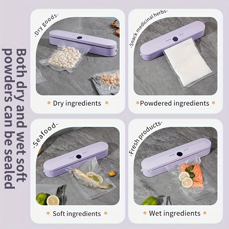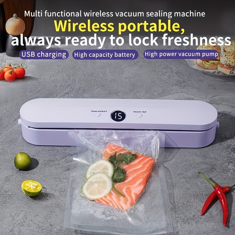 1500mAh batareykaga ega, oq rangli, ko'p funksiyali portativ USB bilan ishlaydigan avtomatik vakuum yopish uchun oziq-ovqatni saqlash uchun, atıştırmalıklar, taomlar va oshxona uchun.