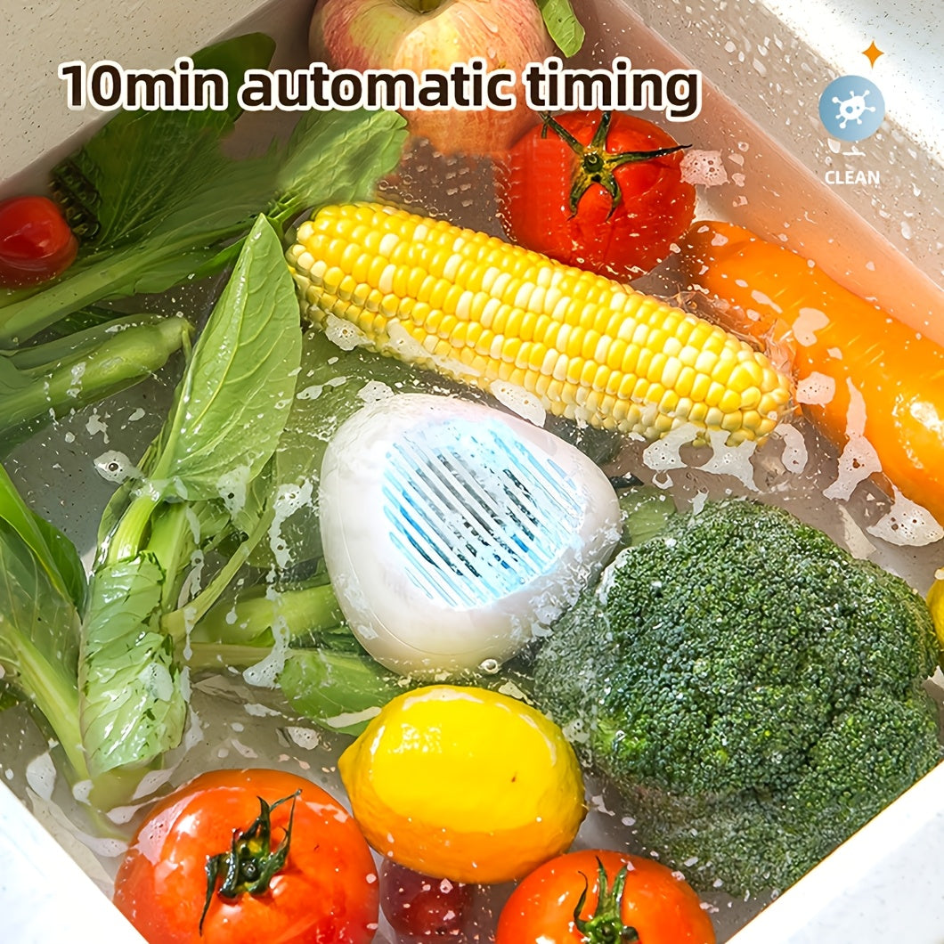 USB bilan qayta to'ldiriladigan portativ simsiz oziq-ovqat tozalash qurilmasi, meva va sabzavotlarni tozalash, pestitsid qoldiqlarini olib tashlash va sterilizatsiya qilish uchun. Magnit bilan quvvatlantirish va taymer funksiyasiga ega.