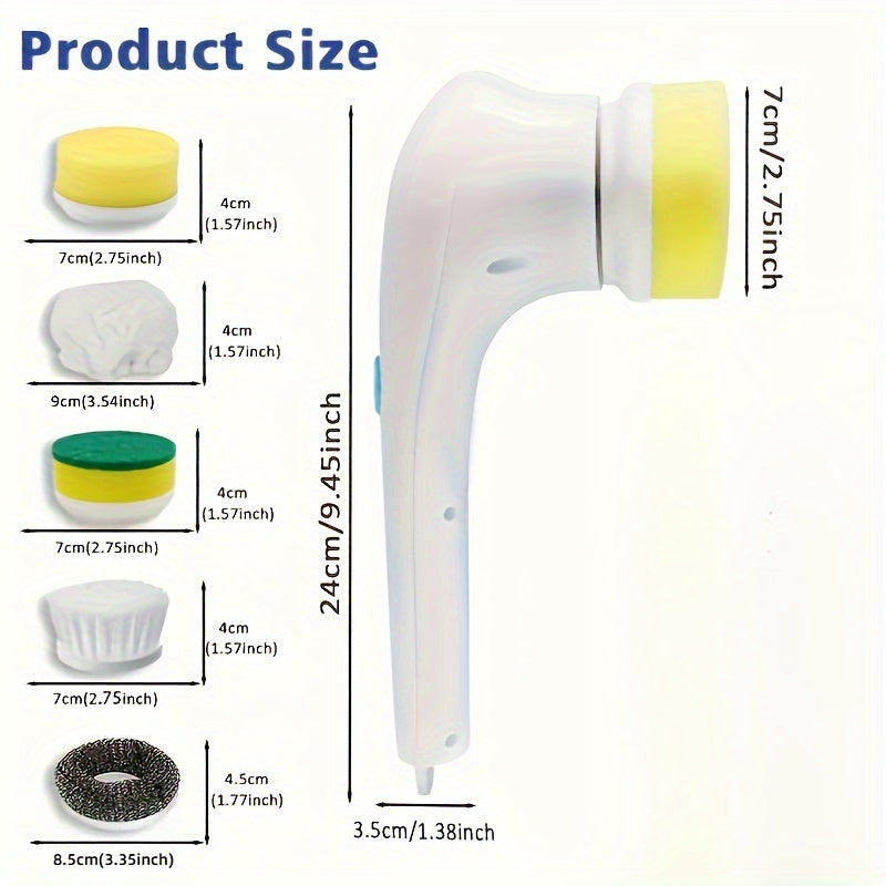 5 ta cho'tka boshli elektr tozalash cho'tkasi to'plami, qayta zaryadlanadigan, oshxona va hammom uchun