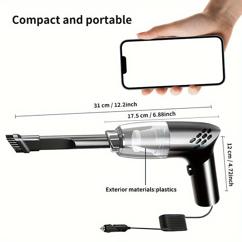 Kuchli vakuumli avtomobil, kuchli so'rish, chuqur tozalash imkoniyatlari va toza avtomobil uchun portativ 12V ishlash.