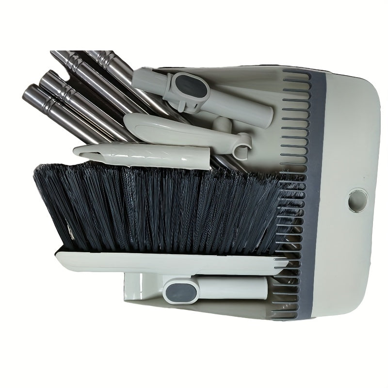 Ichki tozalash uchun amaliy supurgi to'plami - Qattiq pol uchun yumshoq tuklar va egiluvchan zanglamaydigan po'latdan yasalgan tutqich bilan mustahkam supurgi va chang to'plagichni o'z ichiga oladi - Polni supurish uchun zarur tozalash materiallari.